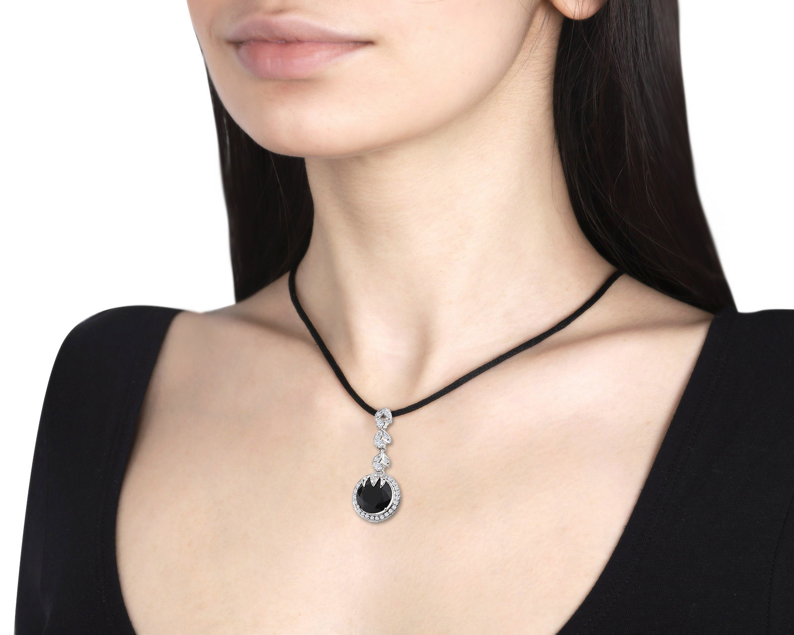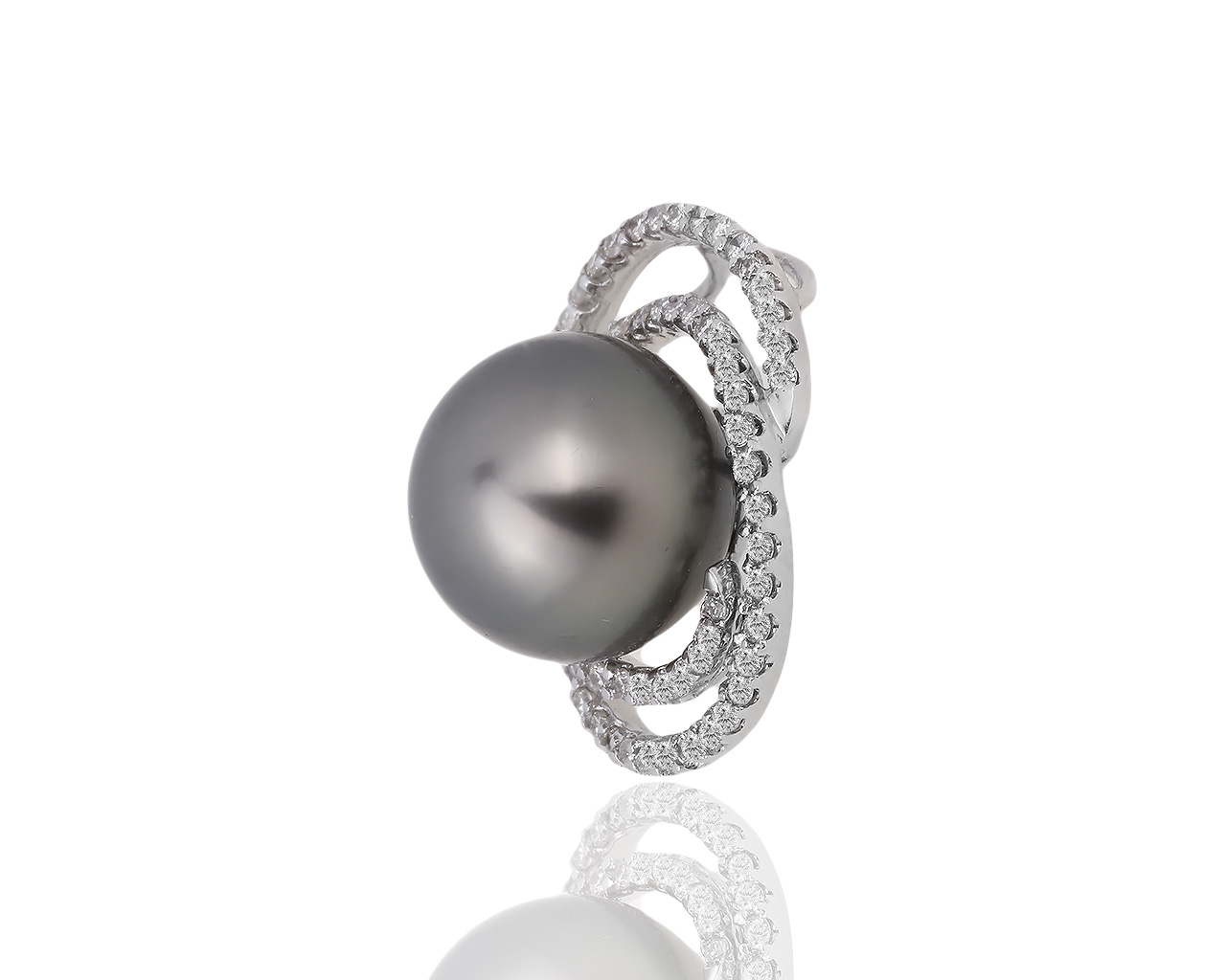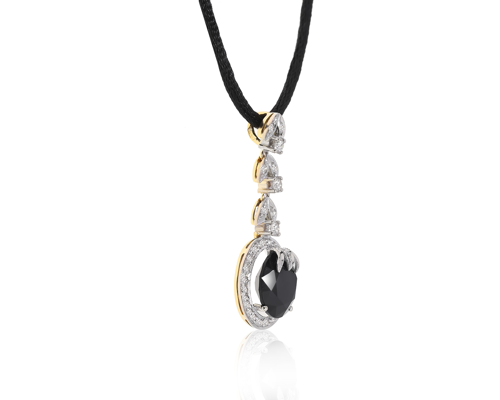 Золотая подвеска с черным жемчугом и бриллиантами 0.40ct 040319/12