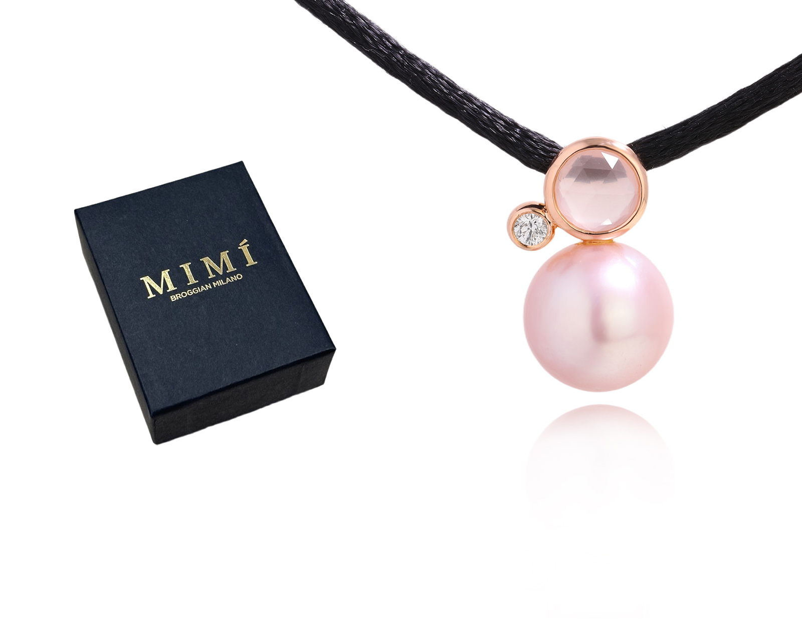 Оригинальный золотой кулон с жемчугом и кварцем 0.52ct MiMi 290725/13