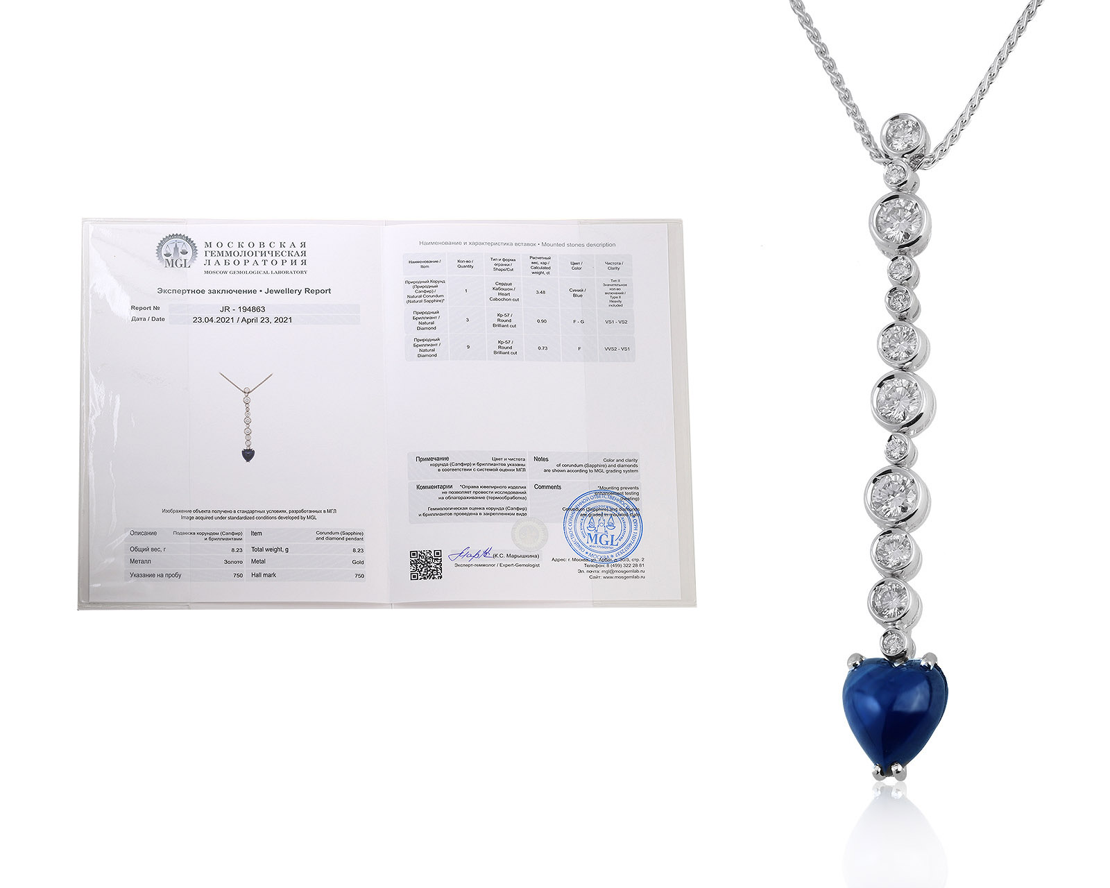 Золотой кулон с сапфирами 1.80ct и бриллиантами 2.25ct