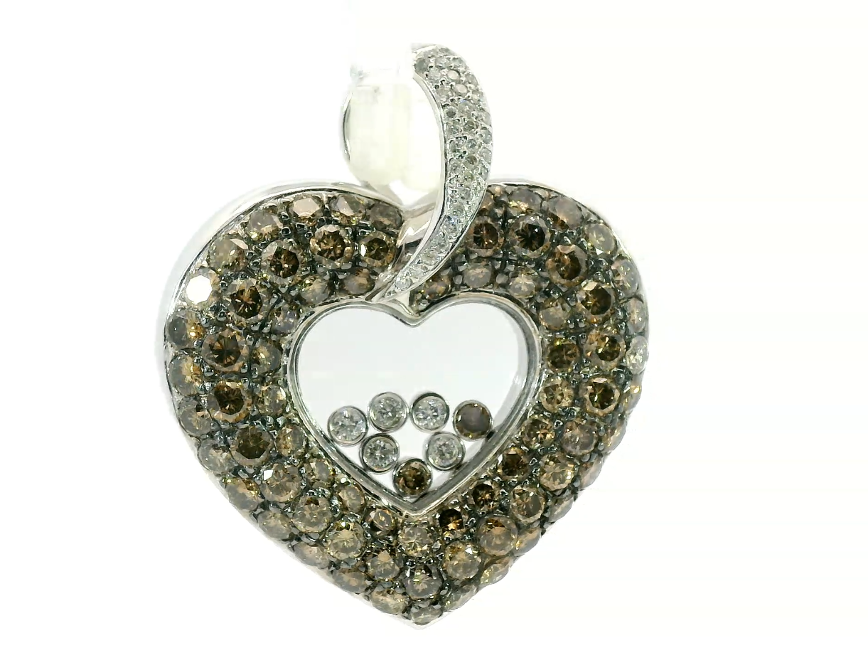 Представляем вашему вниманию романтичную золотую подвеску с коньячными 6.80ct и белыми 0.41ct бриллиантами.