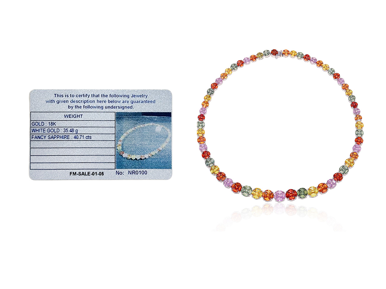 Золотое колье с цветными сапфирами 40.70ct 031024/1