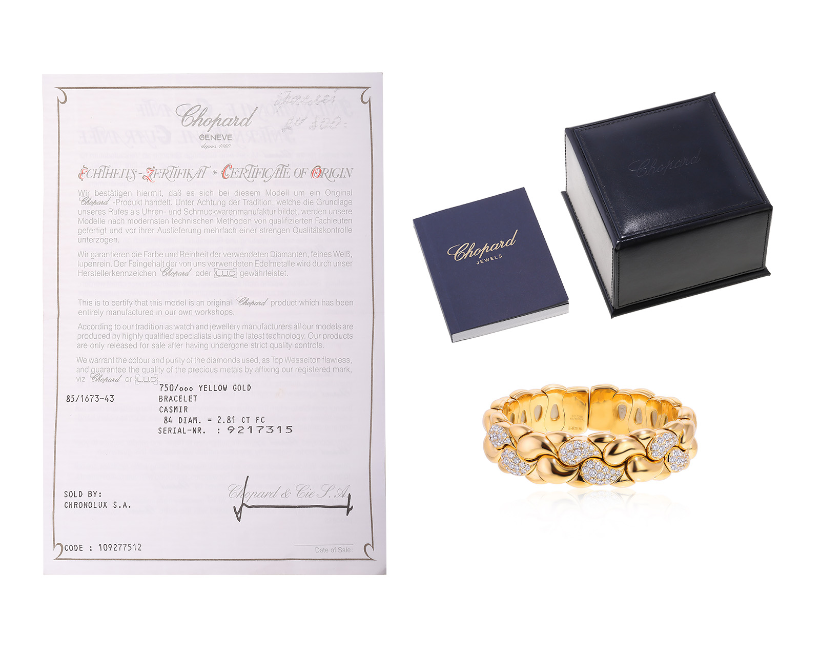 Оригинальный золотой браслет с бриллиантами 2.81ct Chopard Casmir 121224/1