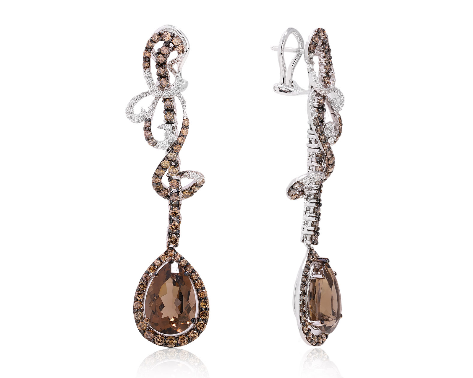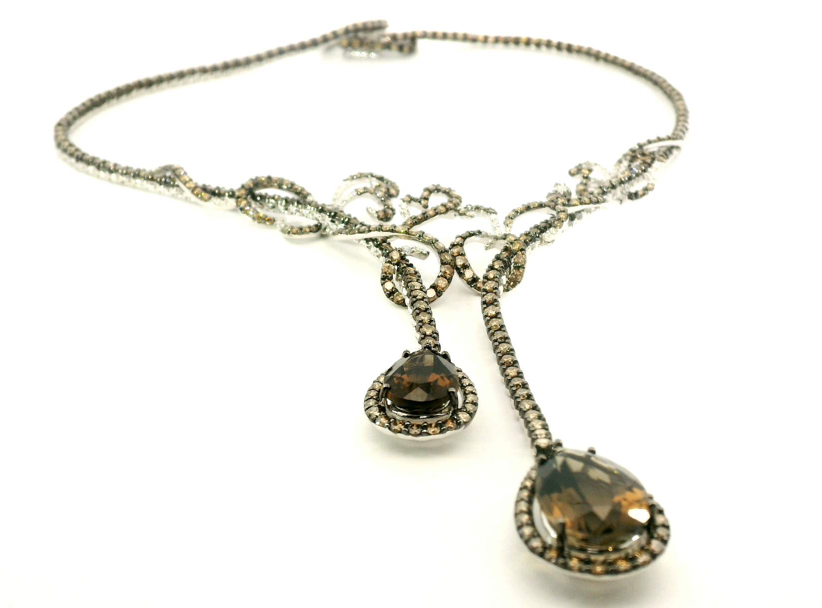 Представляем вашему вниманию золотое колье с дымчатым кварцем 9.70ct, бесцветными 0.45ct и коньячными 5.40ct бриллиантами.