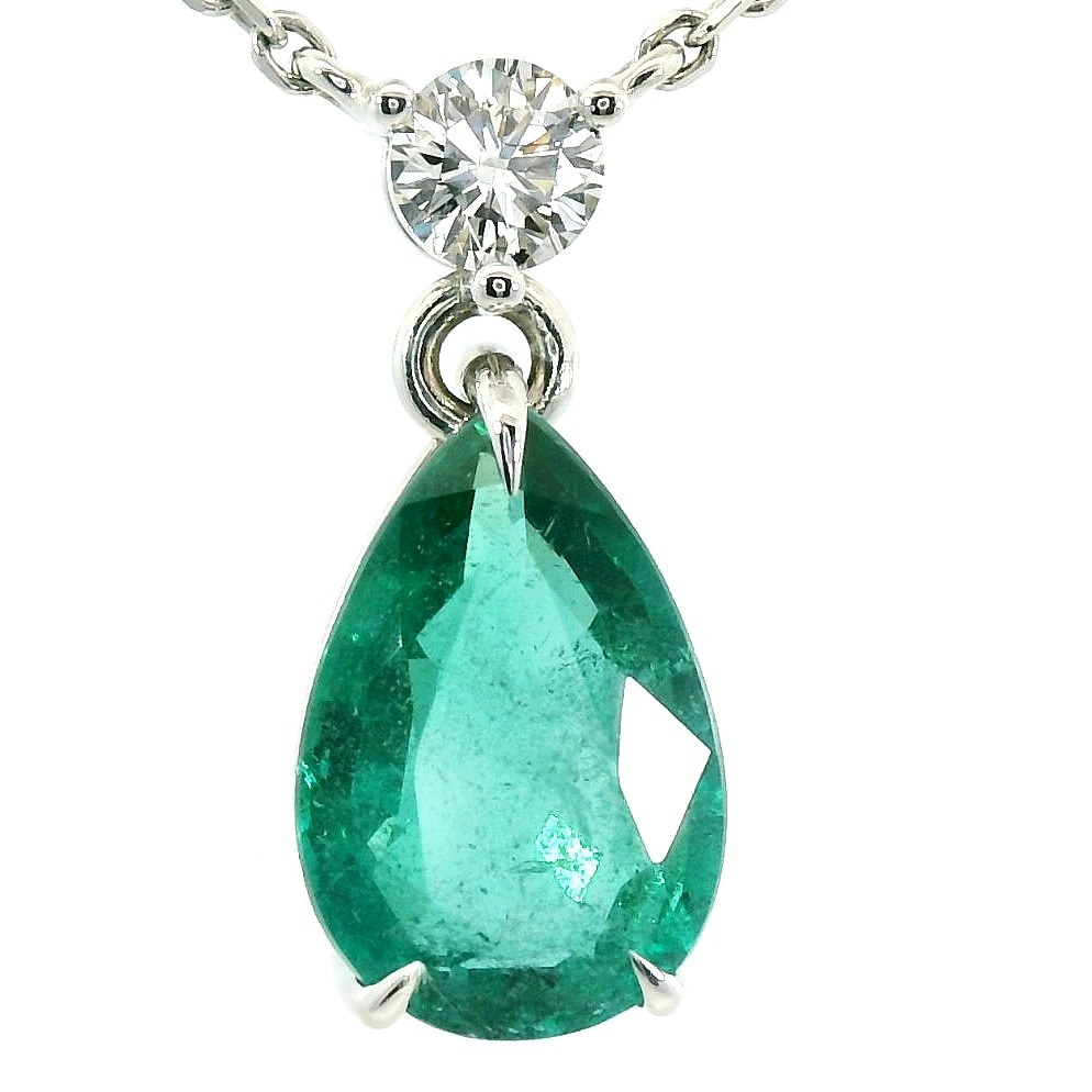 Представляем вашему вниманию золотое колье с изумрудом Замбия 1.92ct, бриллиантом 0.18ct и турмалином параиба 0.01ct.