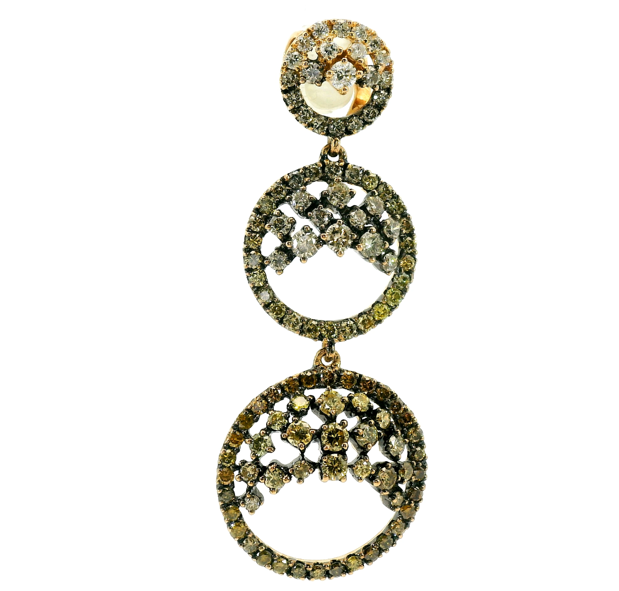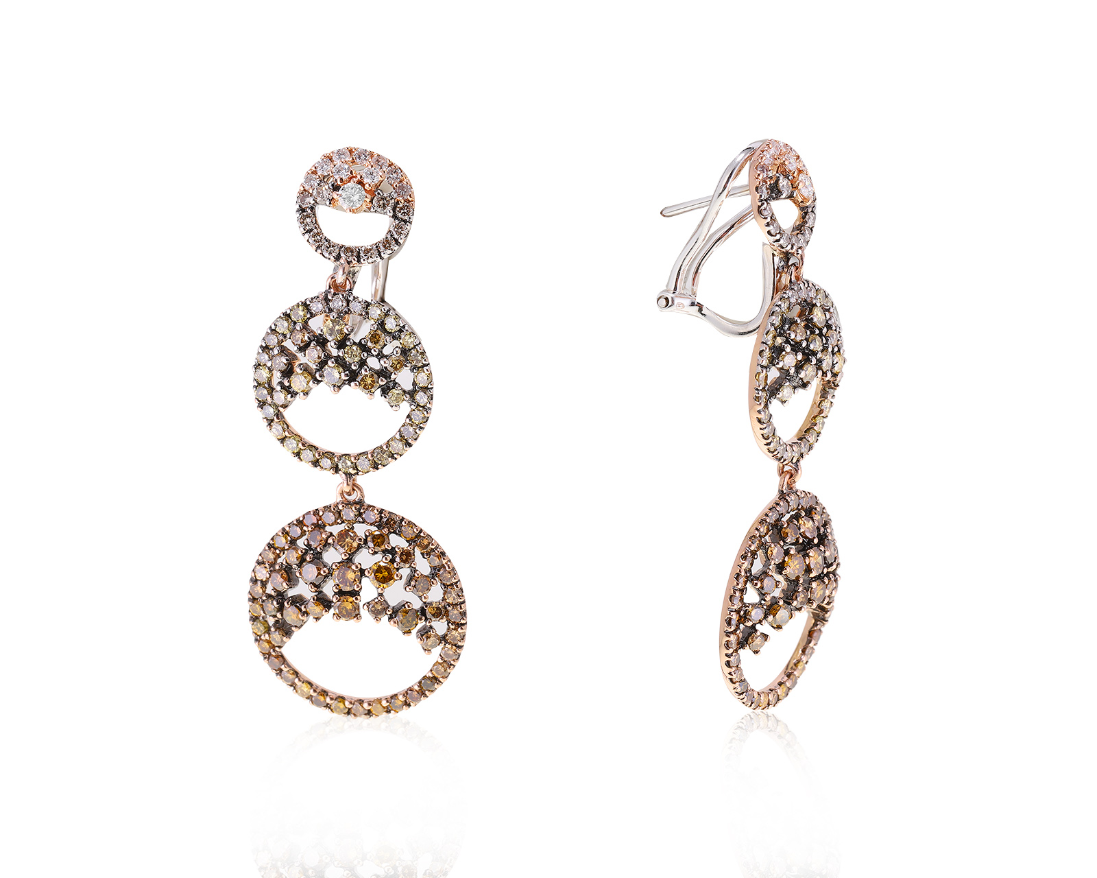 Представляем вашему вниманию золотую подвеску с бесцветными 0.12ct и фантазийными желтыми и коньячными 1.65ct бриллиантами.