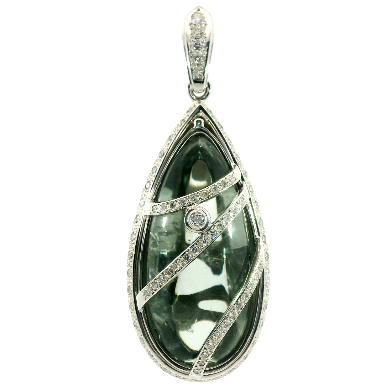 Представляем вашему вниманию золотую подвеску с празиолитом 51.70ct и бриллиантами 0.89ct.