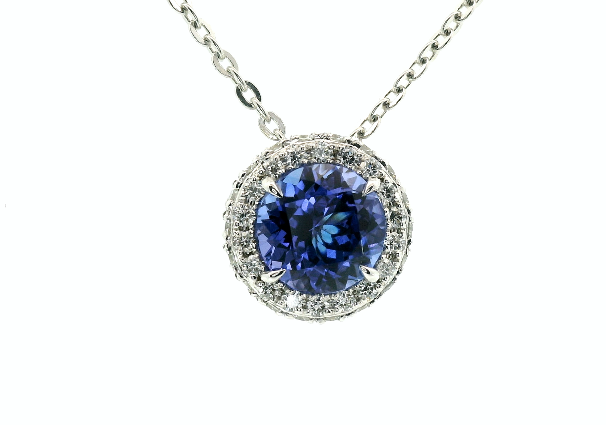 Представляем вашему вниманию золотую подвеску с танзанитом 2.12ct, турмалином параиба 0.01ct и бриллиантами 0.47ct.