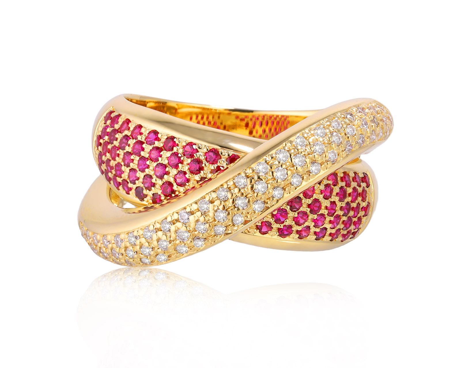 Золотое кольцо с рубинами 0.91ct и бриллиантами 0.80ct 181025/14