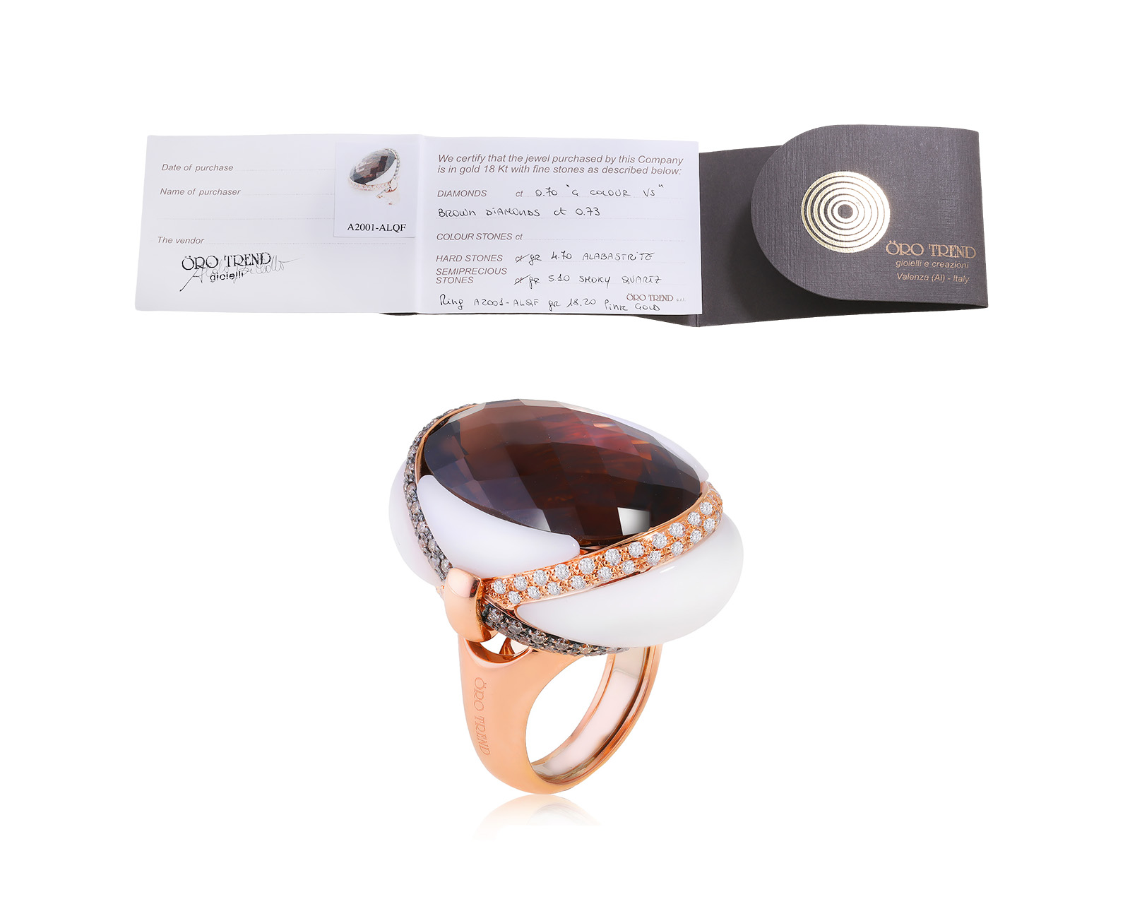 Оригинальное золотое кольцо с кварцем 25.50ct Oro Trend 301223/4