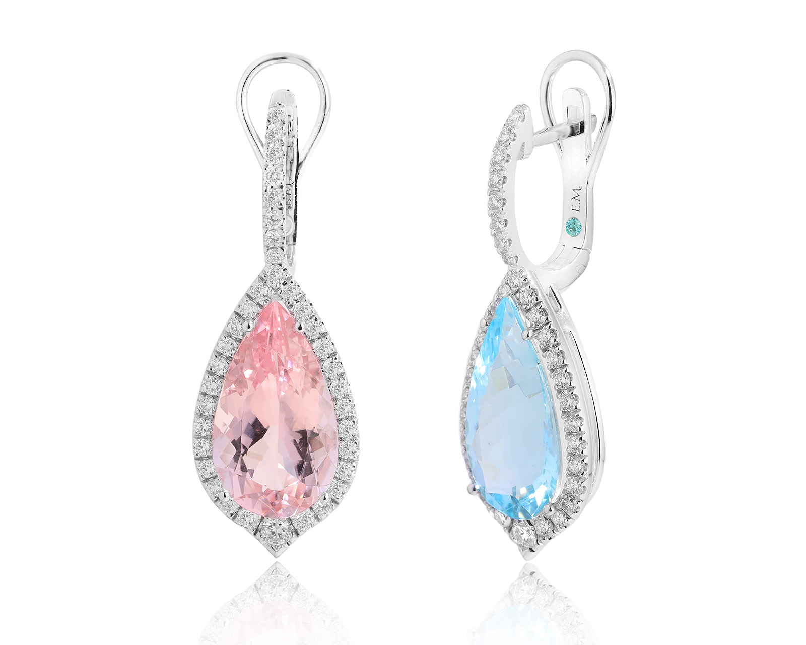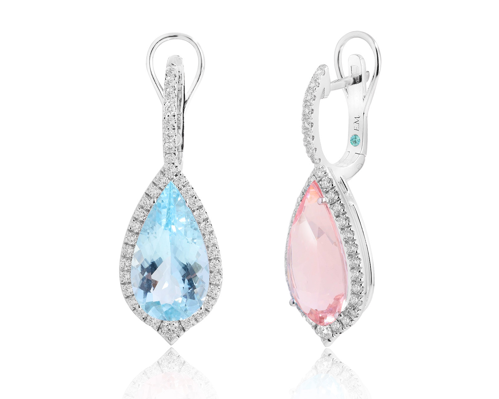 Золотые серьги с аквамарином 3.99ct и морганитом 4.21ct Evgeny Matveev 201025/Б244
