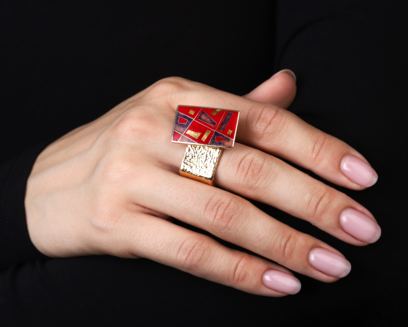 Оригинальное золотое кольцо с эмалью German Kabirski 100823/2