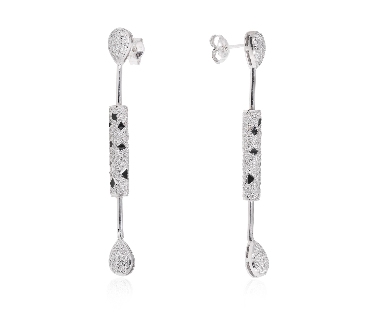 Золотые серьги с эмалью и бриллиантами 2.01ct