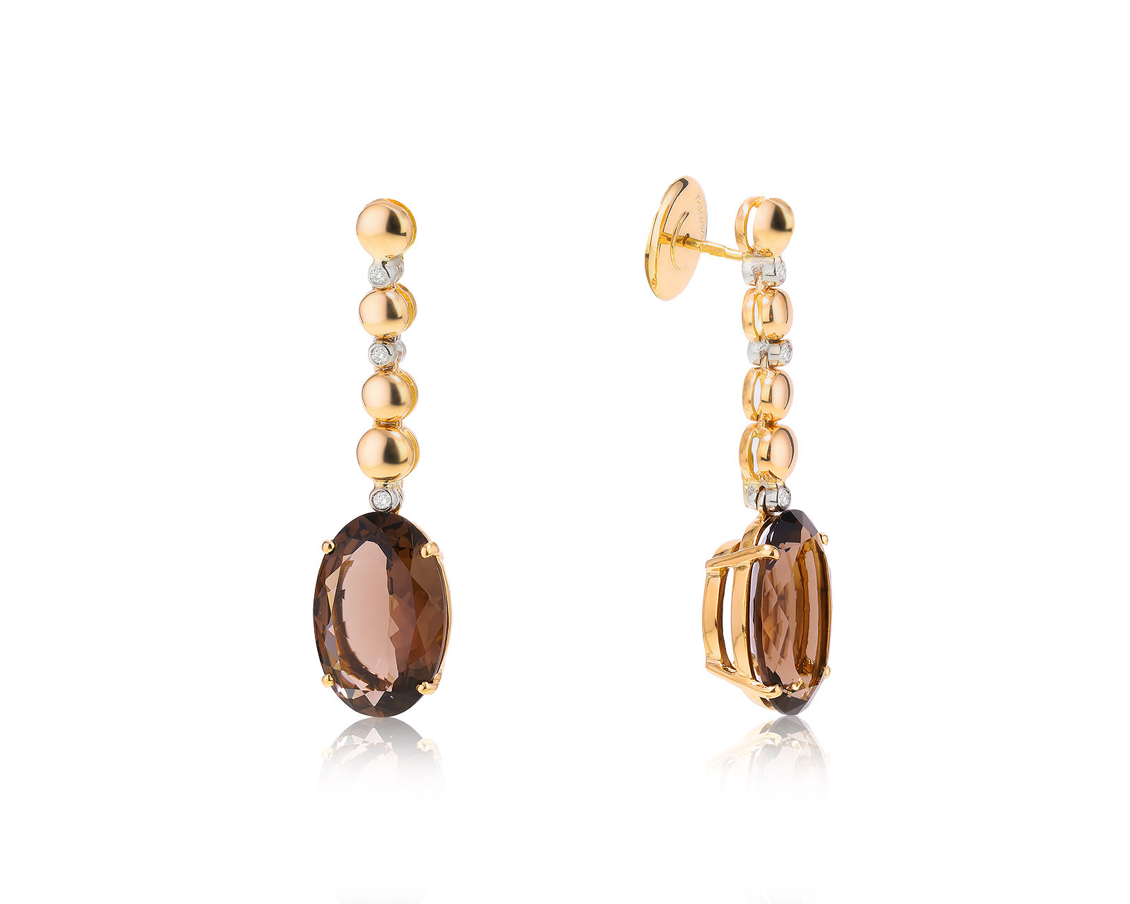 Золотые серьги с дымчатым кварцем 13.45ct 120623/1