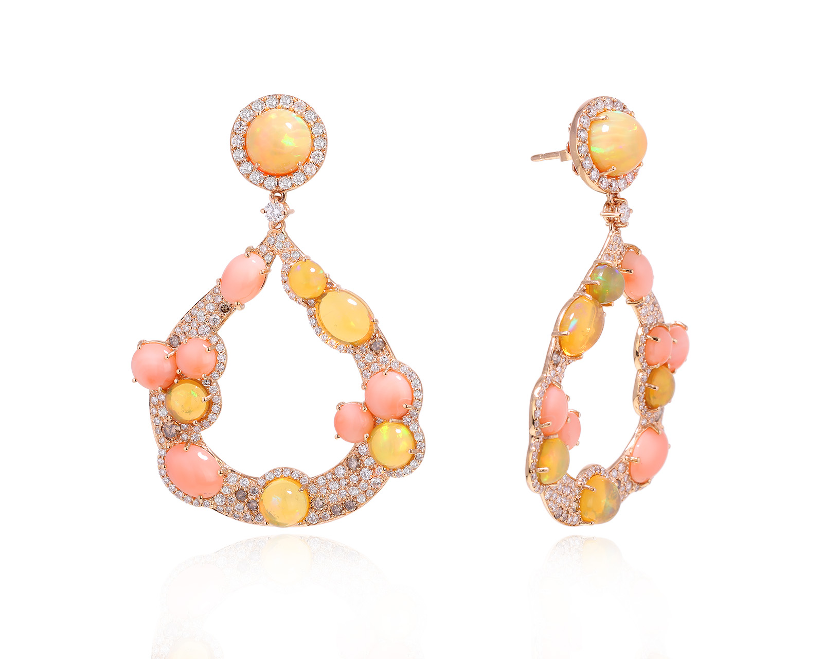 Золотые серьги с благородными опалами 8.96ct и кораллами 6.54ct 011124/3