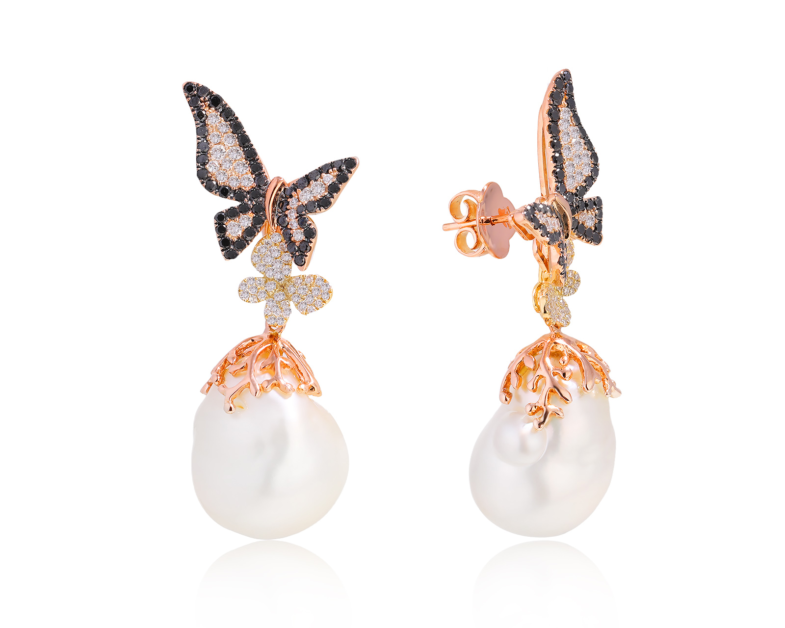 Золотые серьги с барочным жемчугом и бриллиантами 1.72ct 290625/14