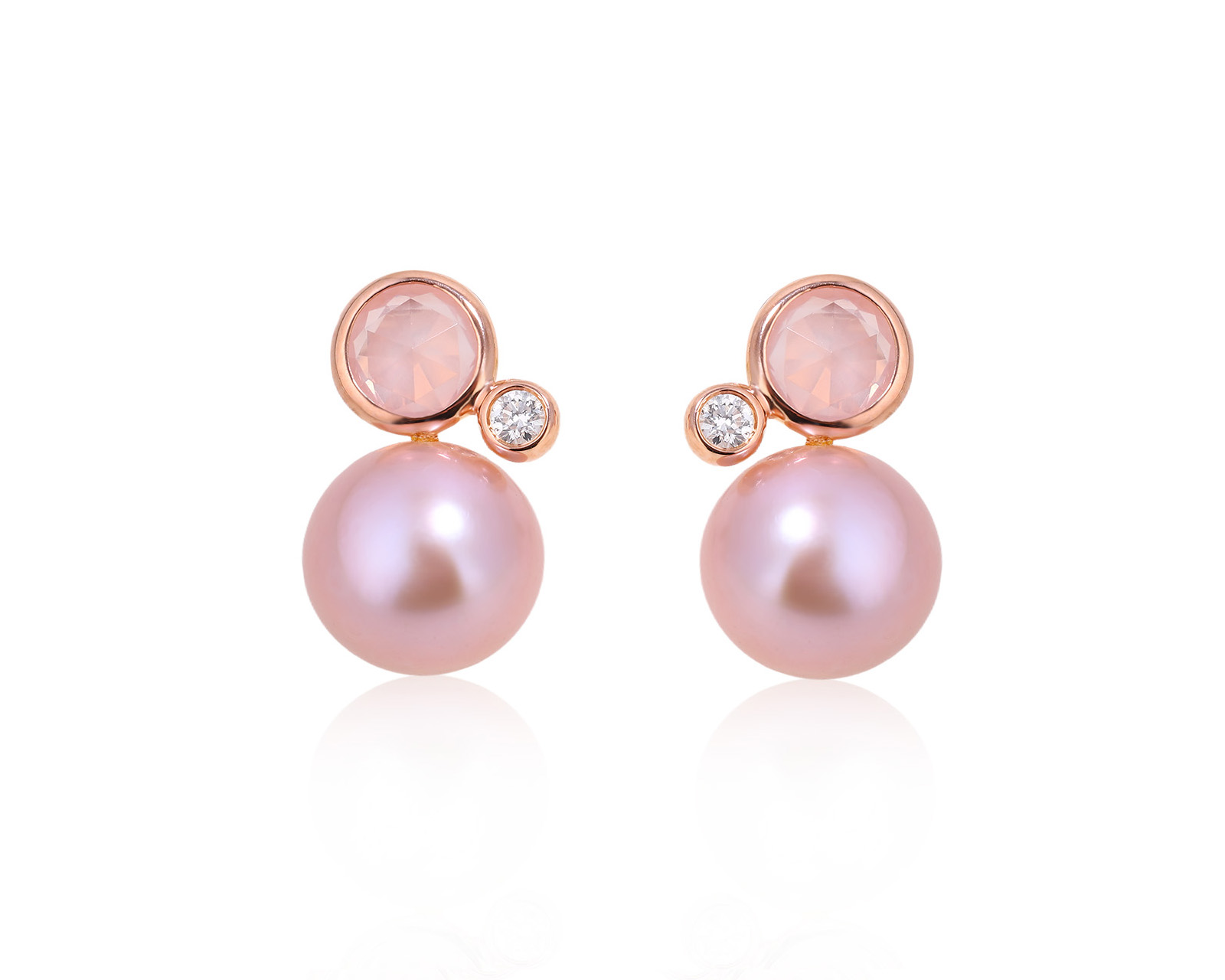 Оригинальные золотые серьги с жемчугом и кварцем 1.04ct MiMi 290725/14