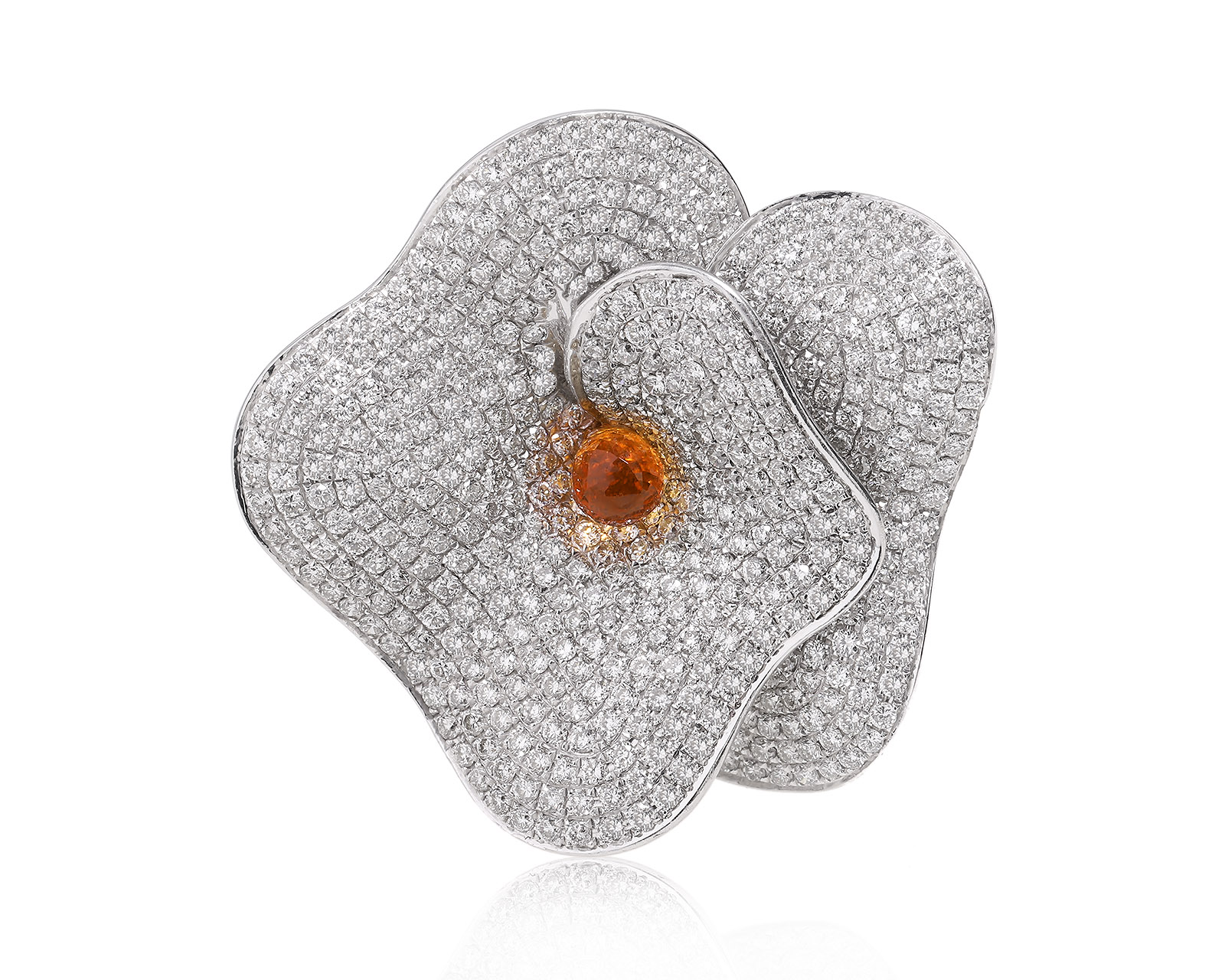 Золотое кольцо с цитрином 0.61ct и бриллиантами 2.42ct