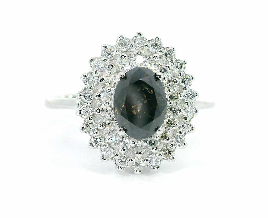 Изысканное золотое кольцо с бриллиантами 1.58ct — настоящее произведение искусства, в котором воплощено не только мастерство ювелира, но и актуальные тренды. Это доказательство вашего изысканного вкуса, высокого статуса и яркий акцент в стильном образе. Вставка — 1 бриллиант овальной огранки 1.04ct Fancy Dark Yellowish Brown/11 (FDYBr/I3), 22 бриллианта круглой огранки 0.37ct 3/6, 18 бриллиантов круглой огранки 0.17ct 3/4 Кр-17, а обрамлением служит золото 585 пробы. Такое сочетание отлично смотрится и позволяет реализовывать самые необычные задумки вашего стиля. Размер ювелирного изделия — 18, бесплатно изменим на любой от 17 до 19.5, а общий вес — 4.13 г, и на пальце оно выглядит просто шикарно, сразу привлекая восхищенное внимание.