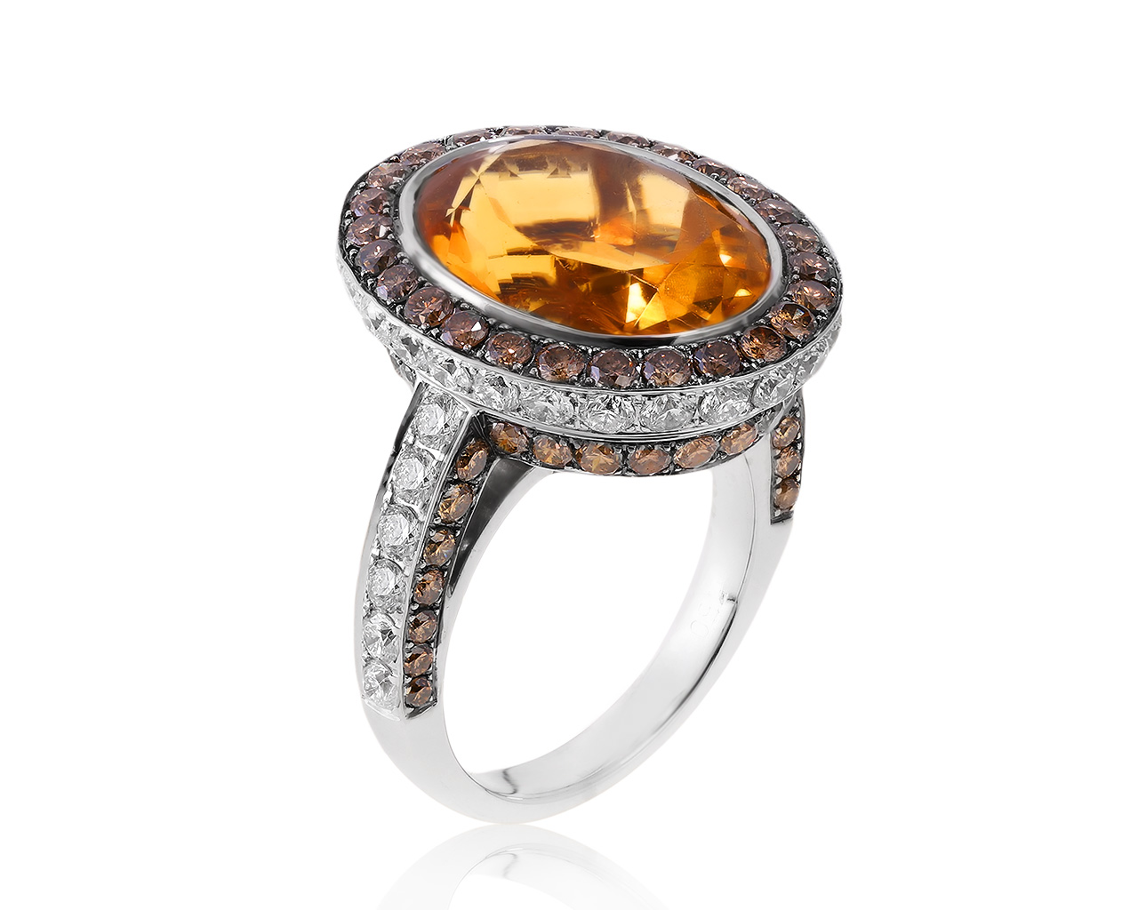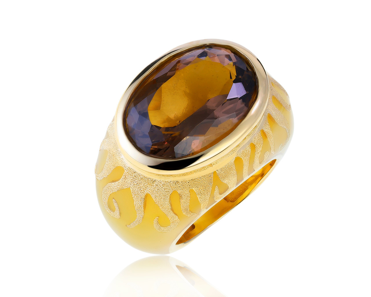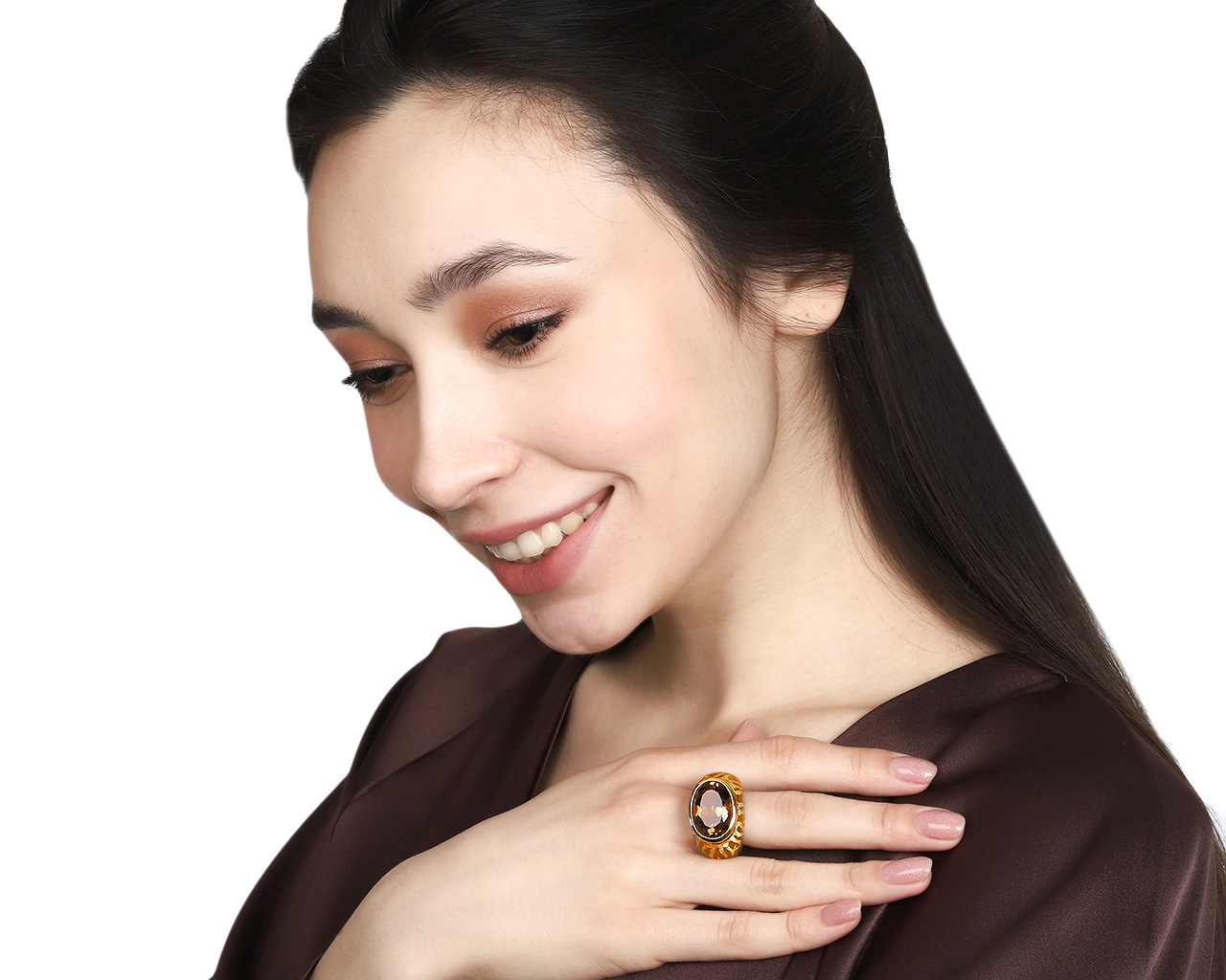Оригинальное золотое кольцо с раухтопазом 6.73ct Angelique de Paris 040221/2