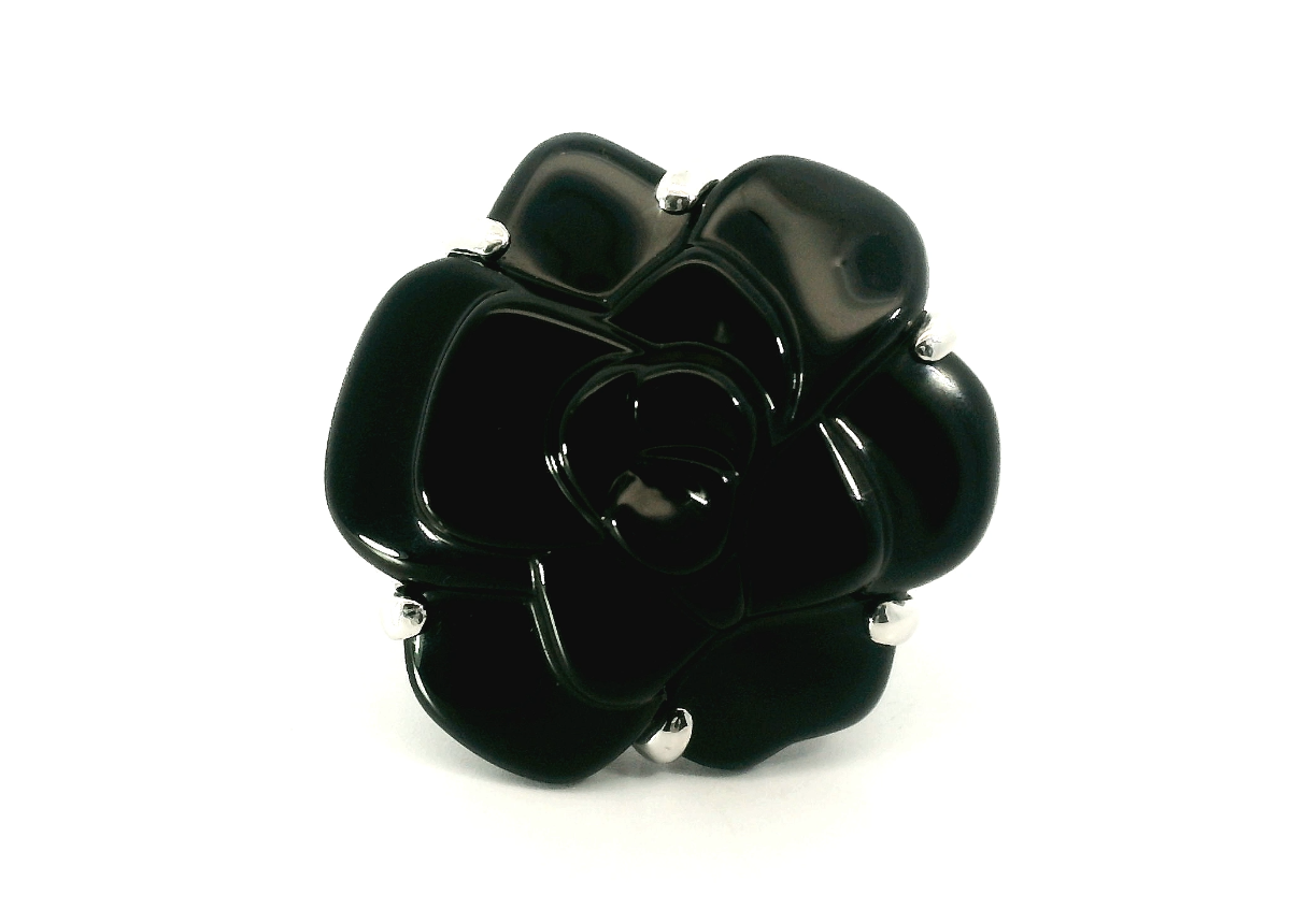 Оригинальное золотое кольцо Chanel Camelia Large — настоящее произведение искусства, в котором воплощено не только мастерство ювелира, но и актуальные тренды. Это доказательство вашего изысканного вкуса, высокого статуса и яркий акцент в стильном образе. Вставка — 1 черный оникс фантазийной огранки 45.00ct, а обрамлением служит золото 750 пробы. Такое сочетание отлично смотрится и позволяет реализовывать самые необычные задумки вашего стиля. Размер ювелирного изделия — 16.5, а общий вес — 21.38 г, и на пальце оно выглядит просто шикарно, сразу привлекая восхищенное внимание.