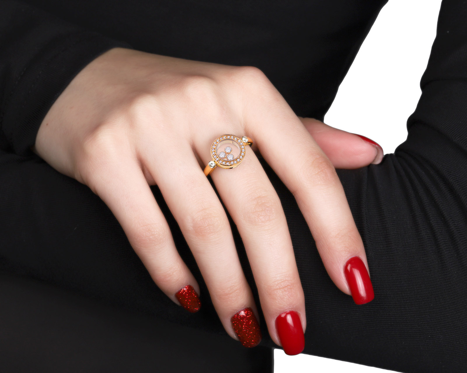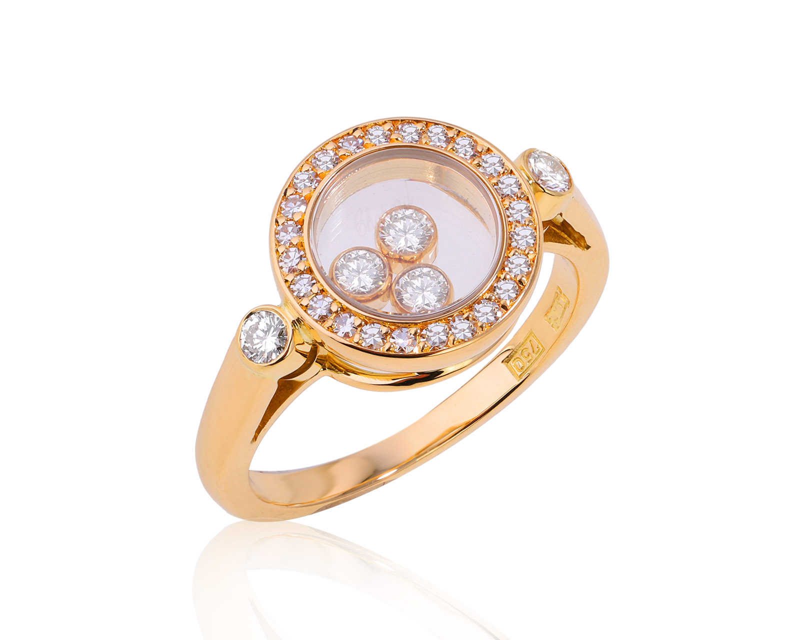 Оригинальное золотое кольцо Chopard Happy Diamond