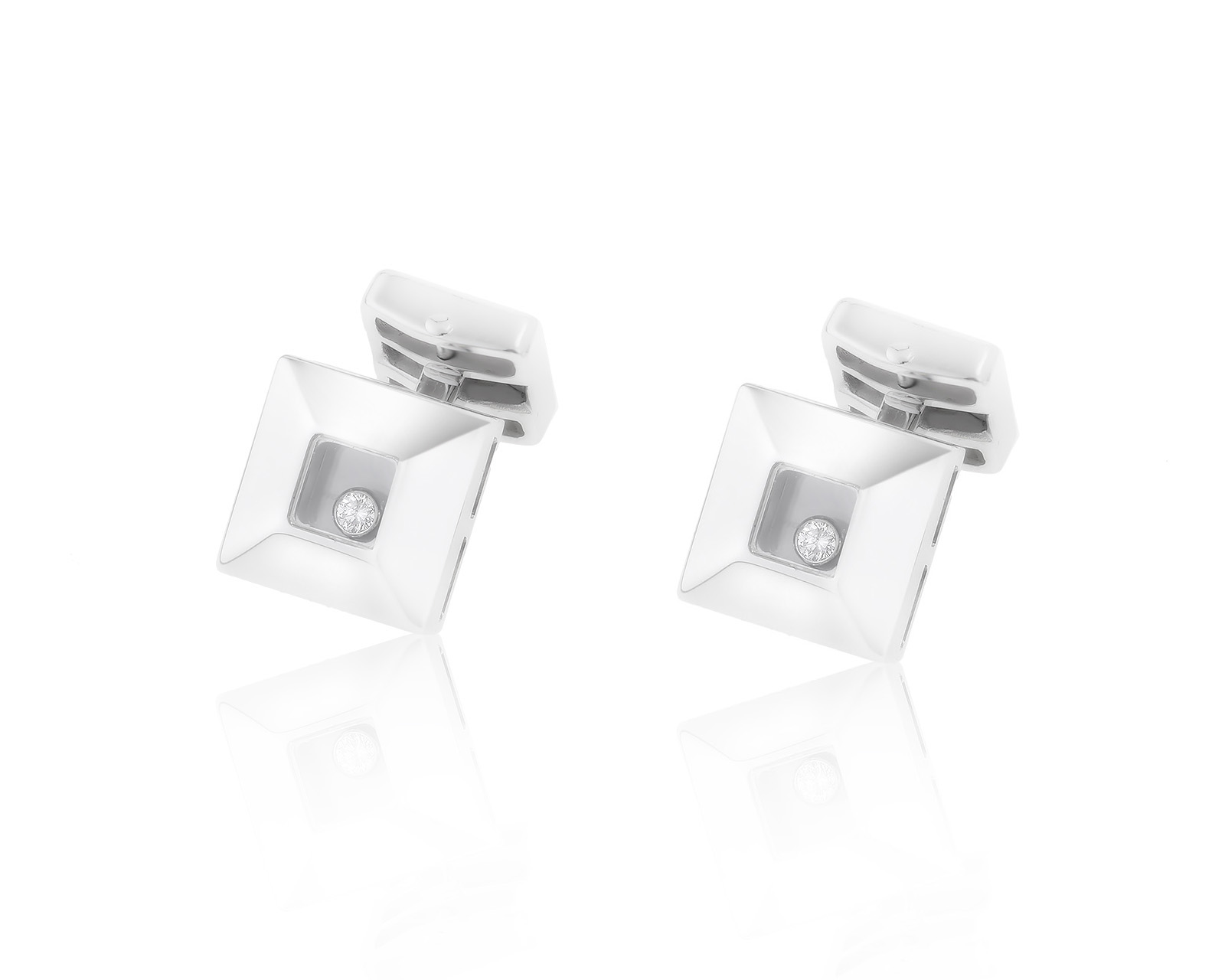 Оригинальные золотые запонки c бриллиантами 0.11ct Chopard Happy Diamonds Square 200324/5