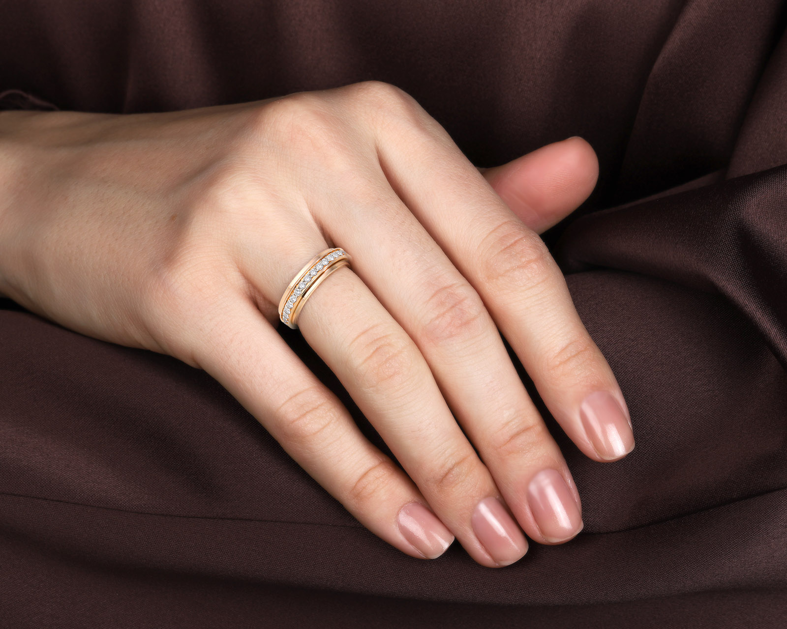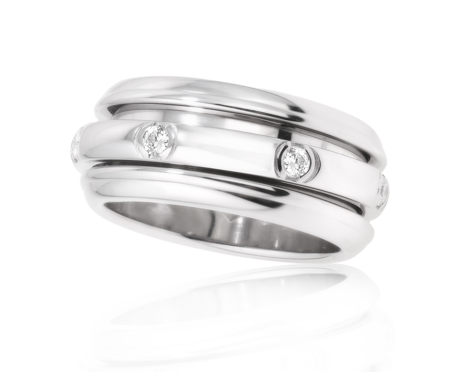 Оригинальное золотое кольцо Piaget Possession — настоящее произведение искусства, в котором воплощено не только мастерство ювелира, но и актуальные тренды. Это доказательство вашего изысканного вкуса, высокого статуса и яркий акцент в стильном образе. Вставка — 7 бриллиантов круглой огранки 0.07ct 3/3, Ширина кольца: 7.3 мм., а обрамлением служит золото 750 пробы. Такое сочетание отлично смотрится и позволяет реализовывать самые необычные задумки вашего стиля. Размер ювелирного изделия — 20.5, а общий вес — 11.09 г, и на пальце оно выглядит просто шикарно, сразу привлекая восхищенное внимание.