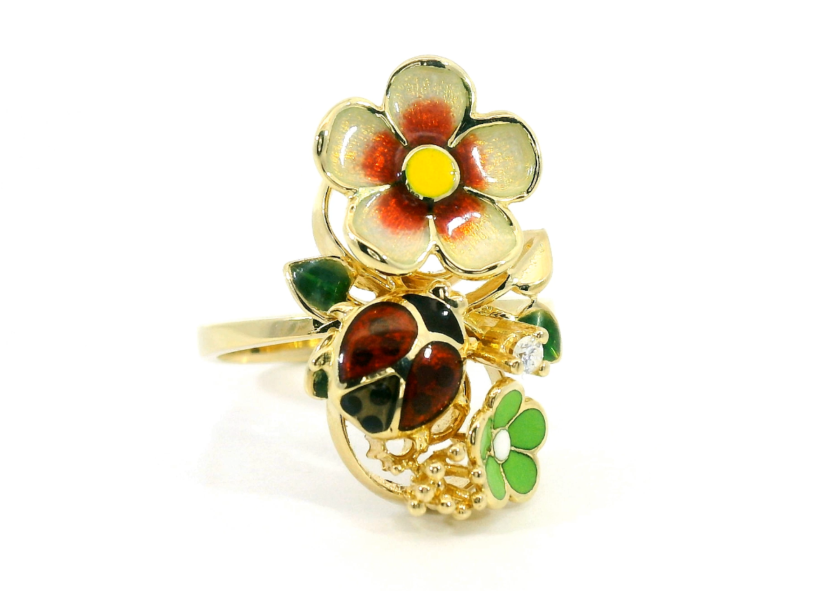 Золотое кольцо с эмалями и бриллиантами 0.27ct Korloff 230318/21