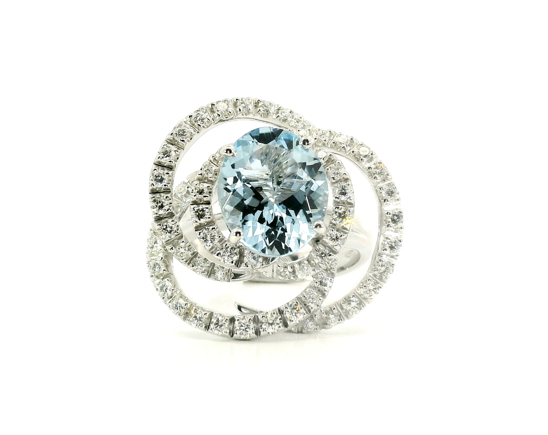 Оригинальное золотое кольцо с аквамарином 4.50ct Damiani Rose — настоящее произведение искусства, в котором воплощено не только мастерство ювелира, но и актуальные тренды. Это доказательство вашего изысканного вкуса, высокого статуса и яркий акцент в стильном образе. Вставка — 1 аквамарин овальной огранки 4.50ct, 63 бриллианта круглой огранки 0.79ct 3/3-3/4, а обрамлением служит золото 750 пробы. Такое сочетание отлично смотрится и позволяет реализовывать самые необычные задумки вашего стиля. Размер ювелирного изделия — 17.5, бесплатно изменим на любой от 17 до 18.5, а общий вес — 12.49 г, и на пальце оно выглядит просто шикарно, сразу привлекая восхищенное внимание.
