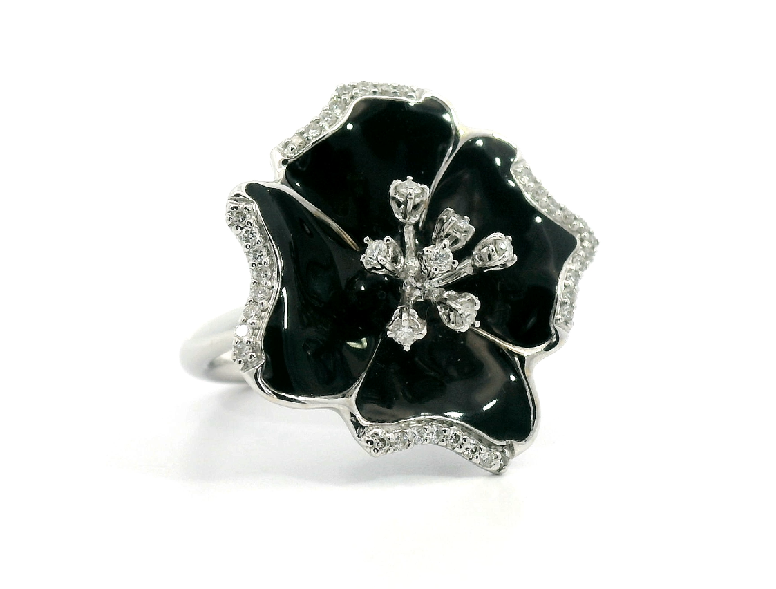 Итальянское золотое кольцо с эмалью и бриллиантами 0.30ct 020719/3