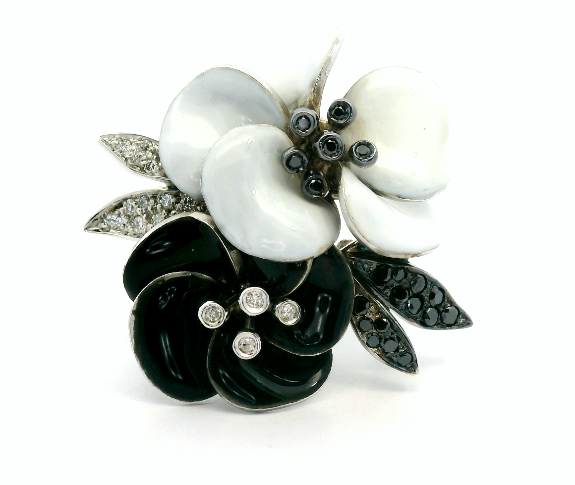 Золотое кольцо-печатка с черными и белыми бриллиантами 1.35ct 201218/12