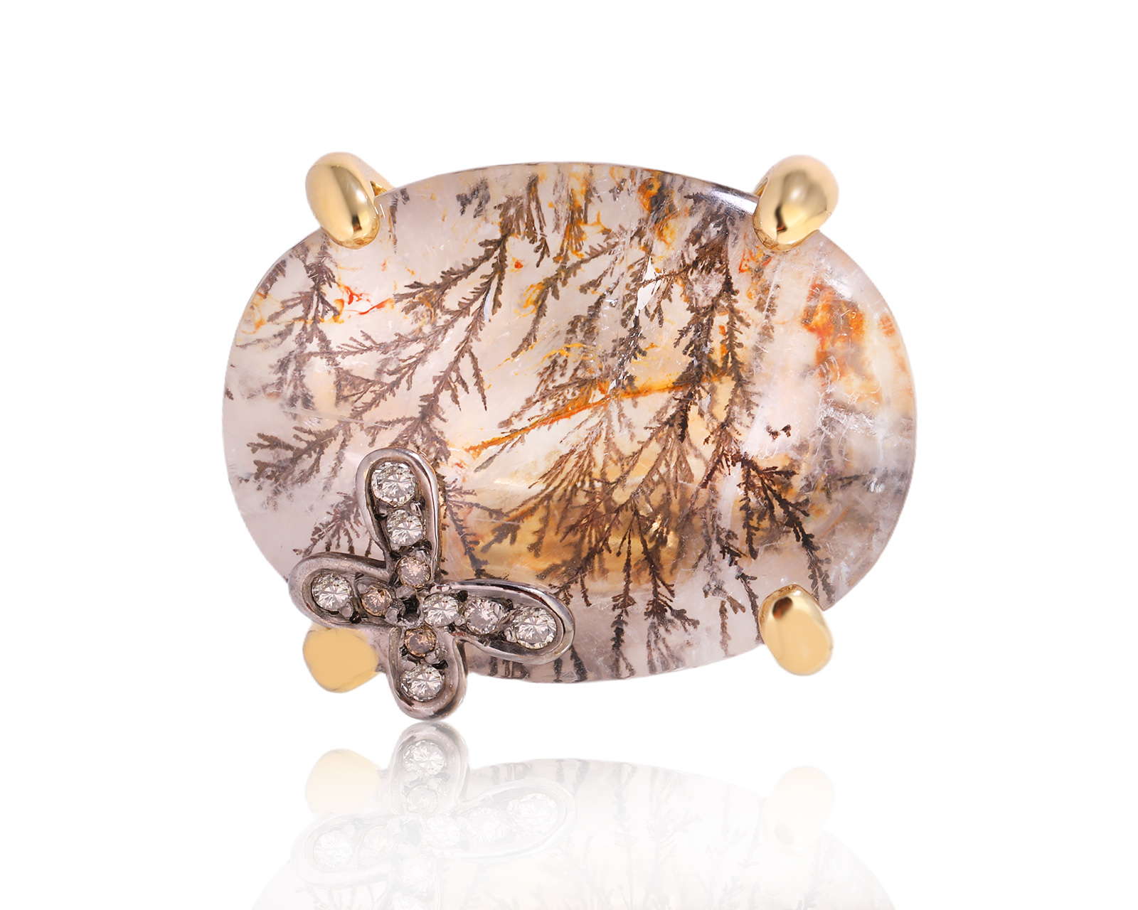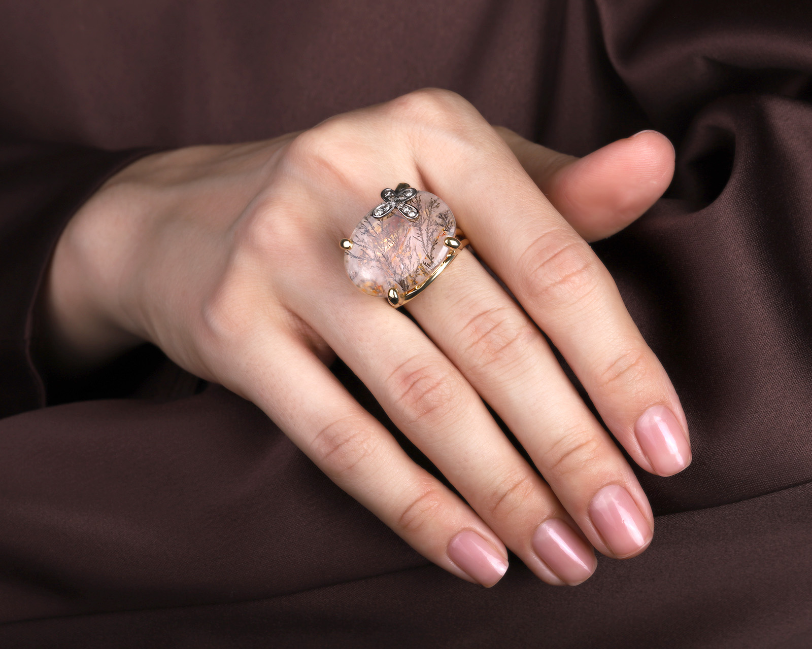 Золотое кольцо с пейзажным кварцем 32.00ct