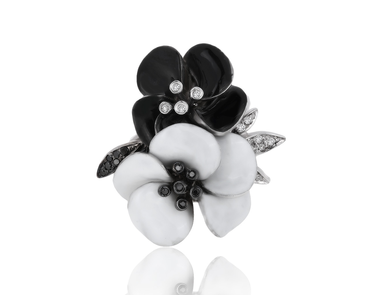 Золотое кольцо-печатка с черными и белыми бриллиантами 1.35ct 201218/12