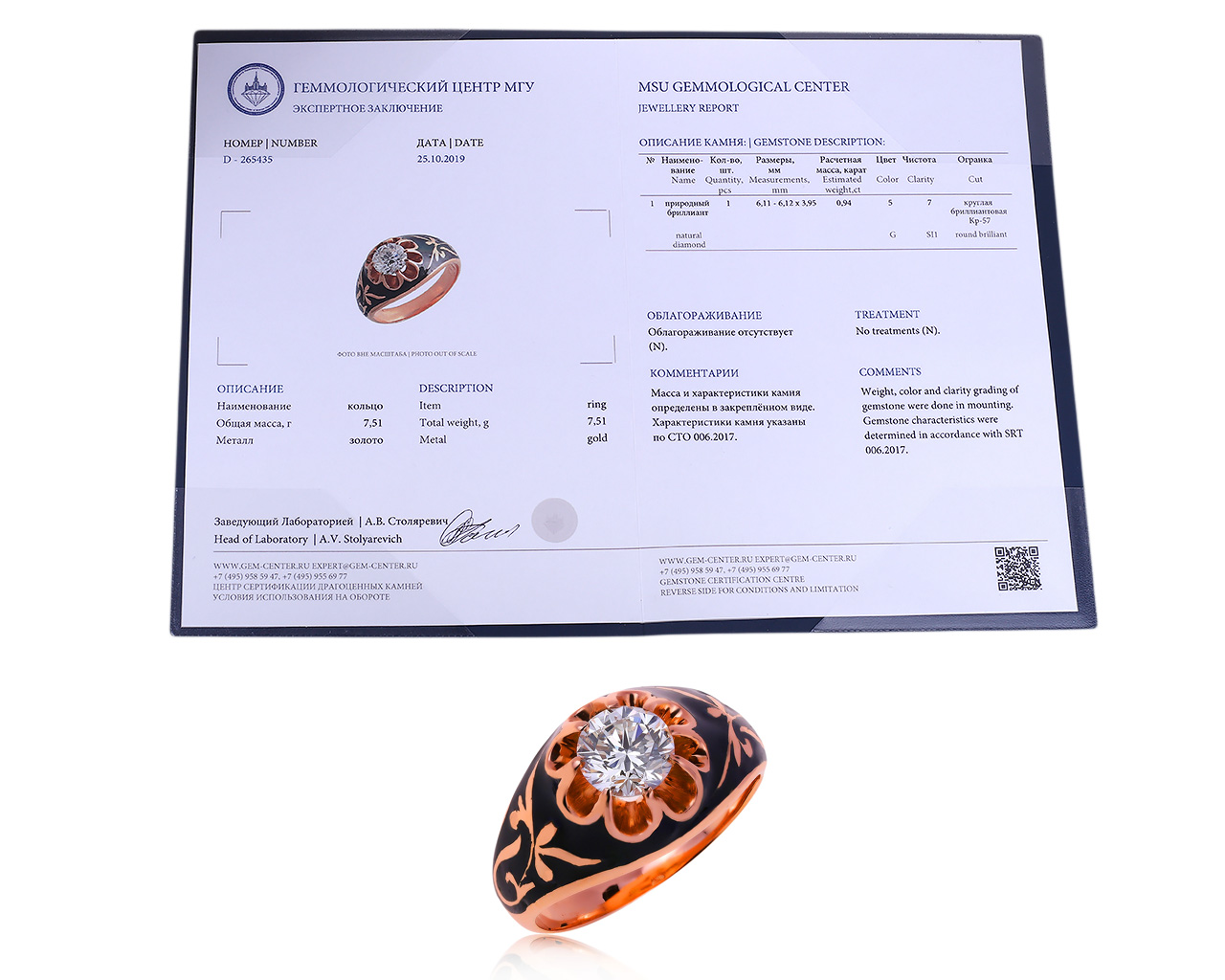 Превосходное золотое кольцо с бриллиантом 0.94ct 120520/1