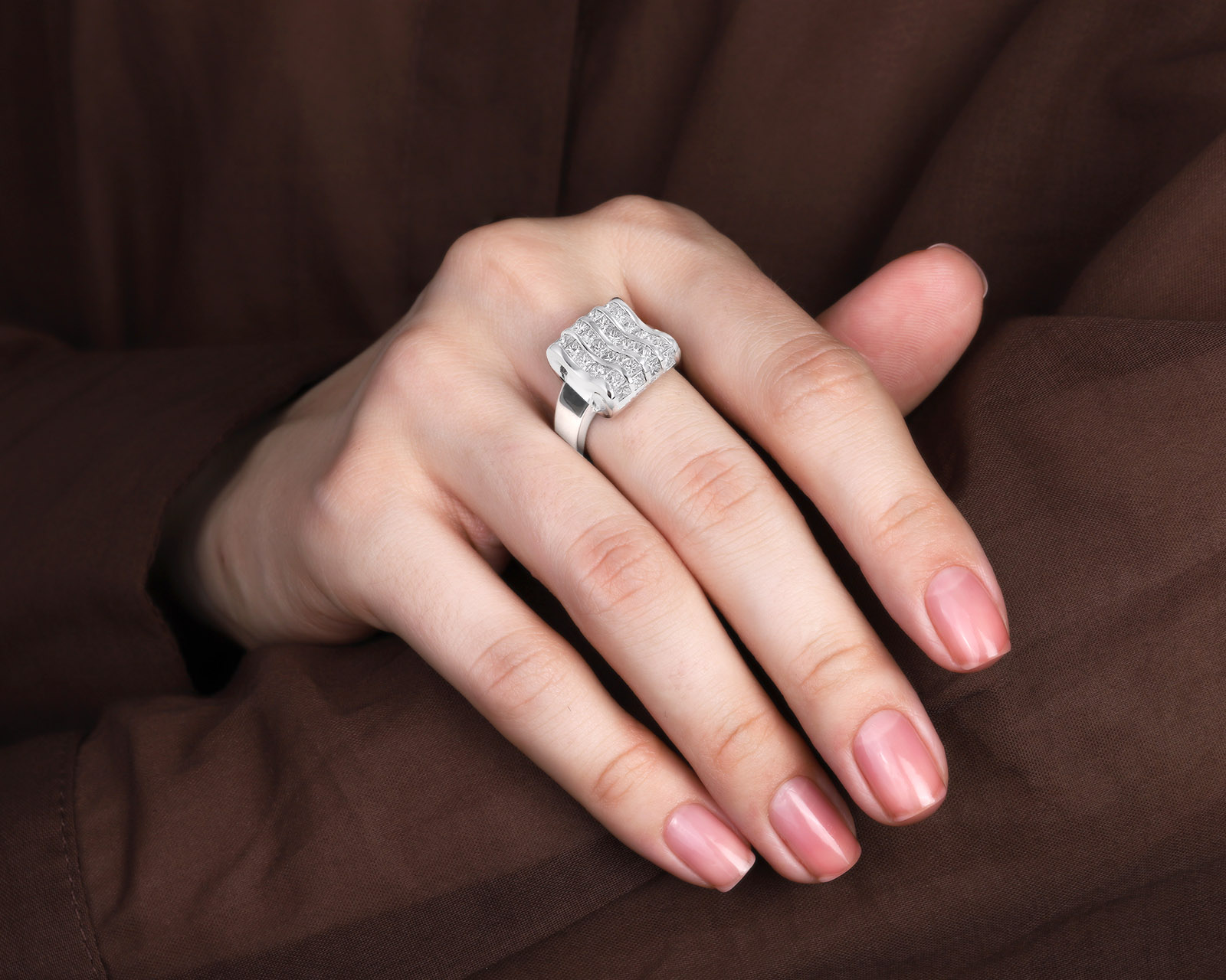 Оригинальное золотое кольцо с бриллиантами 3.49ct Luca Carati — настоящее произведение искусства, в котором воплощено не только мастерство ювелира, но и актуальные тренды. Это доказательство вашего изысканного вкуса, высокого статуса и яркий акцент в стильном образе. Вставка — 25 бриллиантов круглой огранки 1.61ct 7/4-7/5, 122 бриллианта круглой огранки 1.88ct 3/4-3/5, а обрамлением служит золото 750 пробы. Такое сочетание отлично смотрится и позволяет реализовывать самые необычные задумки вашего стиля. Размер ювелирного изделия — 16.75, бесплатно изменим на любой от 15.75 до 17.75, а общий вес — 15.22 г, и на пальце оно выглядит просто шикарно, сразу привлекая восхищенное внимание.