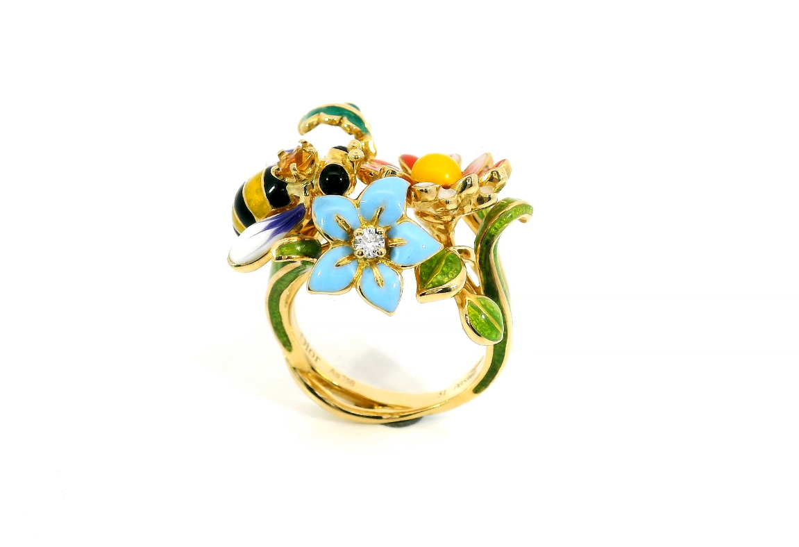 Золотое кольцо с эмалями и бриллиантами 0.27ct Korloff 230318/21