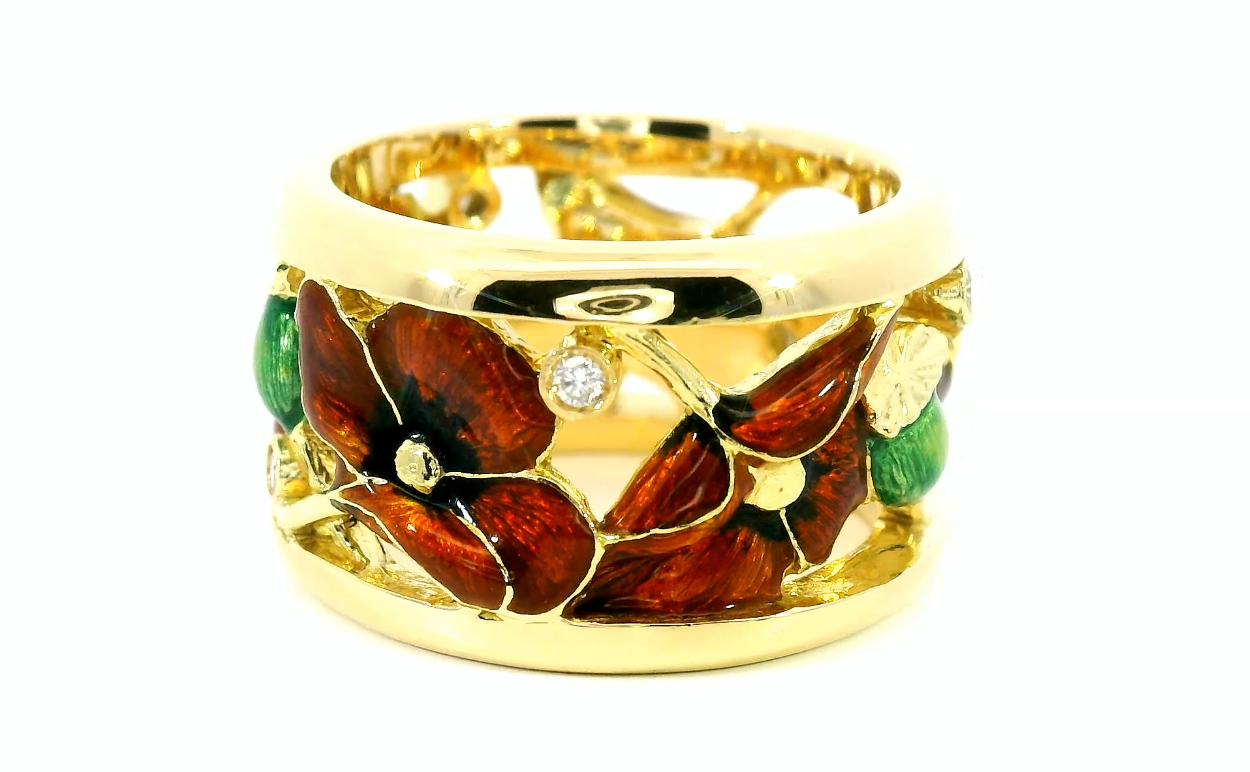 Золотое кольцо с эмалями и бриллиантами 0.27ct Korloff 230318/21