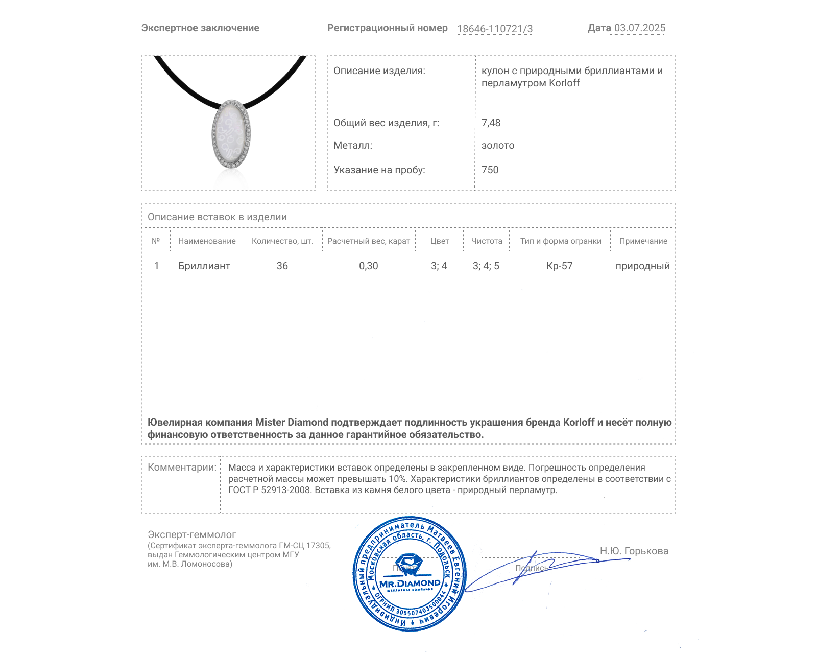 Оригинальный золотой кулон с бриллиантами 0.30ct Korloff 110721/3