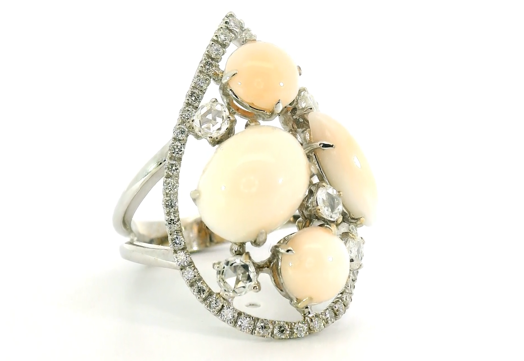 Оригинальное золотое кольцо с кораллами 8.02ct Zydo — настоящее произведение искусства, в котором воплощено не только мастерство ювелира, но и актуальные тренды. Это доказательство вашего изысканного вкуса, высокого статуса и яркий акцент в стильном образе. Вставка — 4 коралла огранки "кабошон" 8.02ct, 5 бриллиантов круглой огранки 0.40ct 3/4-4/5, 45 бриллиантов круглой огранки 0.45ct 3/3-4/4, а обрамлением служит золото 750 пробы. Такое сочетание отлично смотрится и позволяет реализовывать самые необычные задумки вашего стиля. Размер ювелирного изделия — 17.5, бесплатно изменим на любой от 16.5 до 19, а общий вес — 8.73 г, и на пальце оно выглядит просто шикарно, сразу привлекая восхищенное внимание.