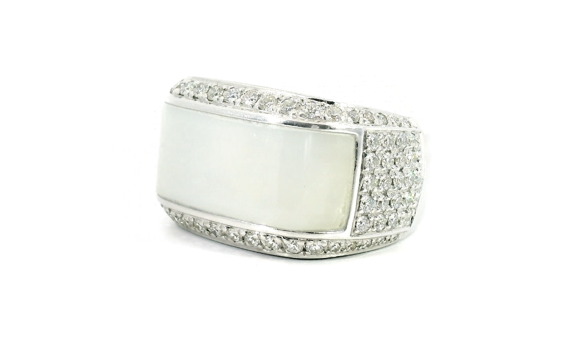 Оригинальное золотое кольцо с ониксом 3.55ct Di Modolo — настоящее произведение искусства, в котором воплощено не только мастерство ювелира, но и актуальные тренды. Это доказательство вашего изысканного вкуса, высокого статуса и яркий акцент в стильном образе. Вставка — 1 оникс огранки "кабошон" 3.55ct, 134 бриллианта круглой огранки 1.80ct 4/3-4/4, а обрамлением служит золото 750 пробы. Такое сочетание отлично смотрится и позволяет реализовывать самые необычные задумки вашего стиля. Размер ювелирного изделия — 16.5, бесплатно изменим на 14.5, а общий вес — 21.89 г, и на пальце оно выглядит просто шикарно, сразу привлекая восхищенное внимание.