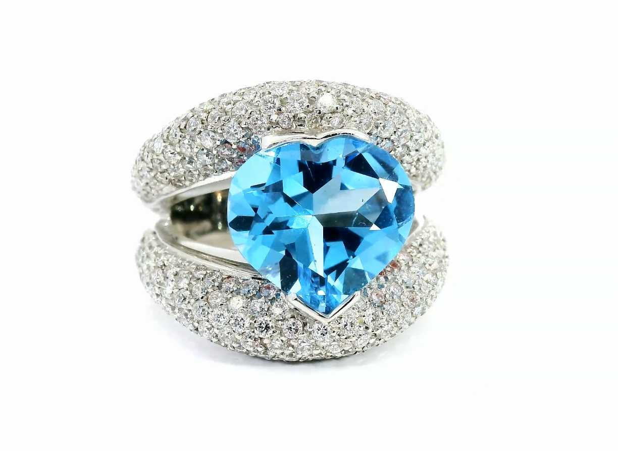 Оригинальное золотое кольцо с топазом 4.60ct Garavelli — настоящее произведение искусства, в котором воплощено не только мастерство ювелира, но и актуальные тренды. Это доказательство вашего изысканного вкуса, высокого статуса и яркий акцент в стильном образе. Вставка — 1 топаз огранки "сердце" 4.60ct, 255 бриллиантов круглой огранки 2.35ct 3/3-3/4, а обрамлением служит золото 750 пробы. Такое сочетание отлично смотрится и позволяет реализовывать самые необычные задумки вашего стиля. Размер ювелирного изделия — 16.25, бесплатно изменим на любой от 15.75 до 16.75, а общий вес — 14.12 г, и на пальце оно выглядит просто шикарно, сразу привлекая восхищенное внимание.