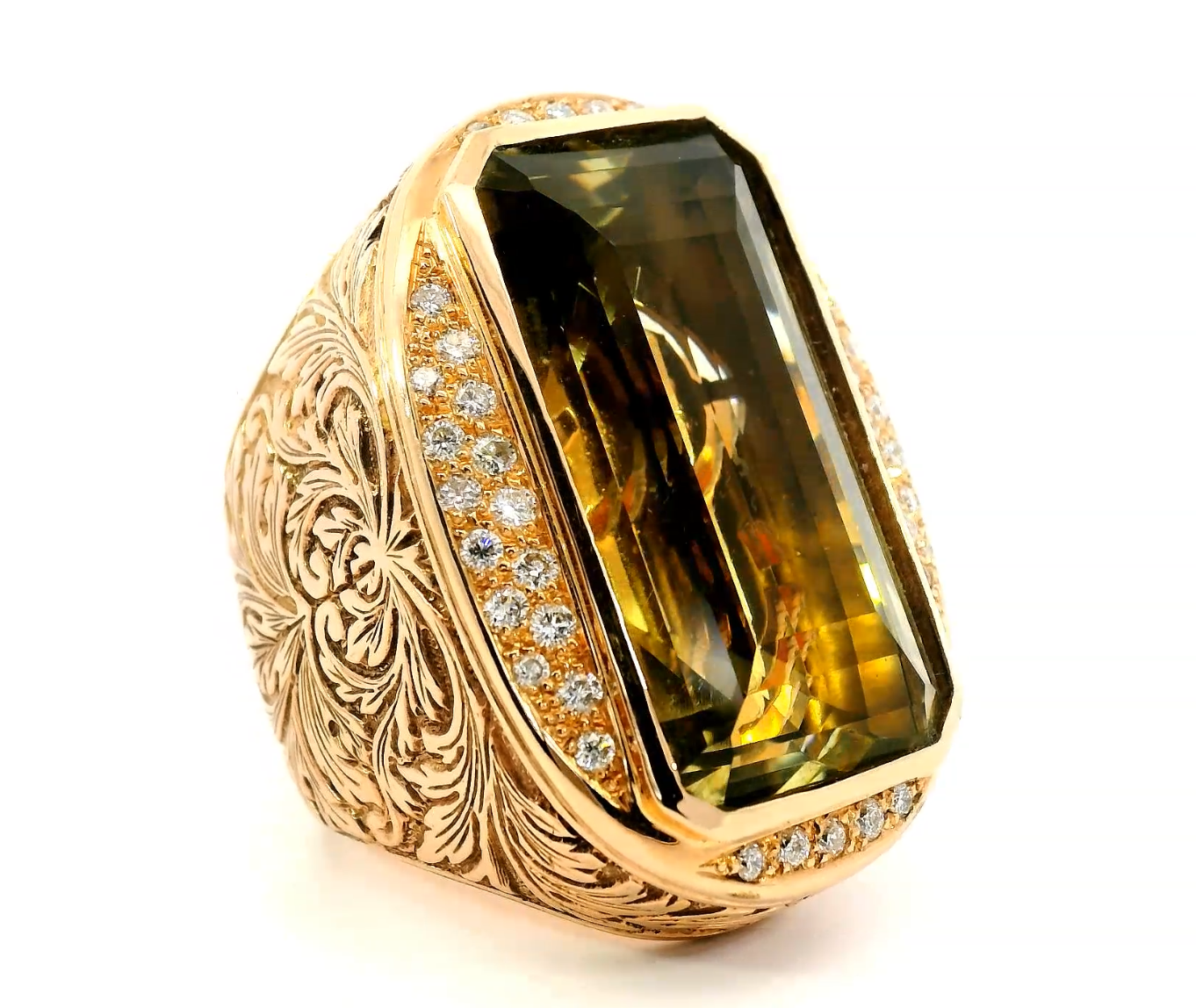 Красивое золотое кольцо с хризолитом 3.64ct
