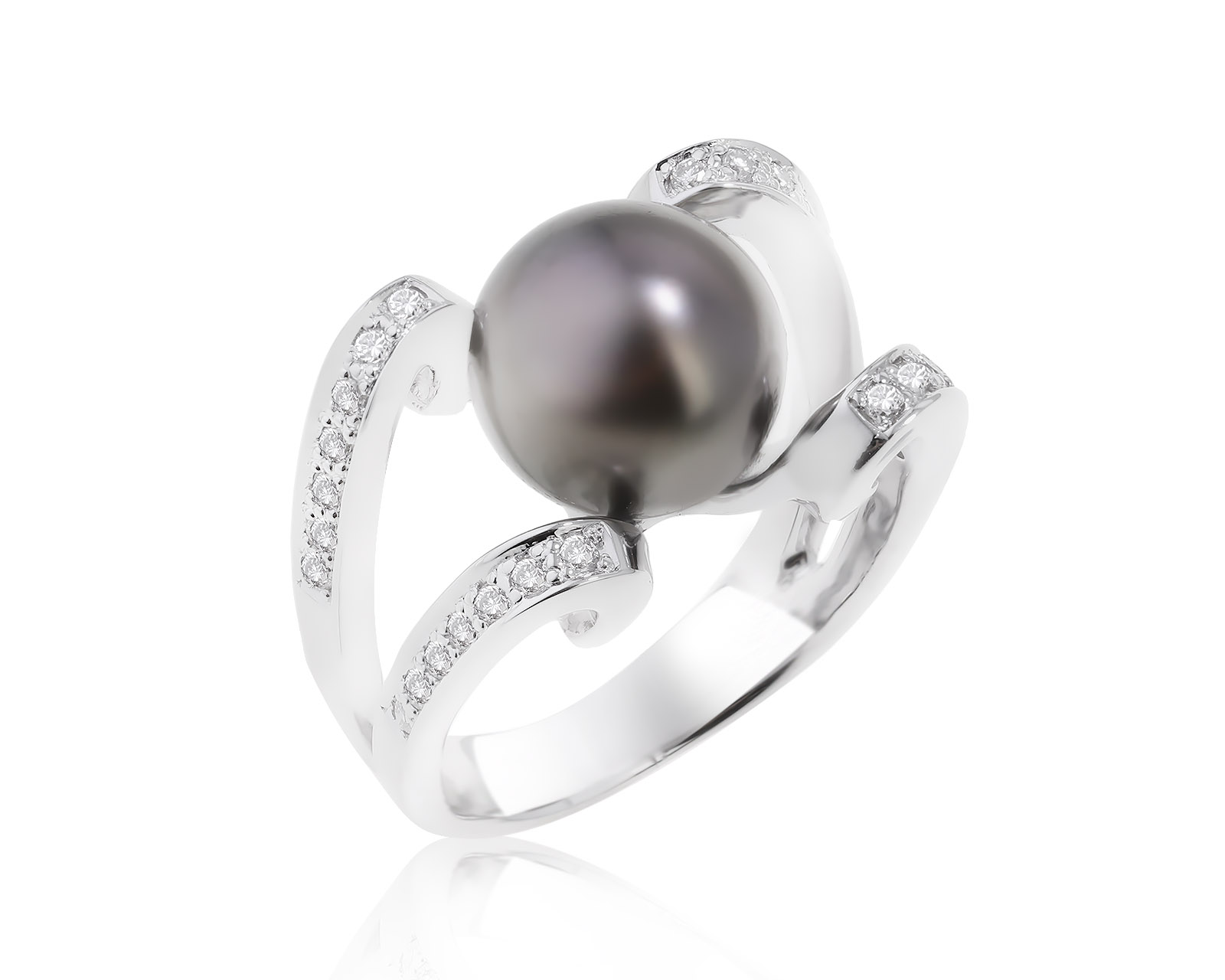 Золотое кольцо с жемчугом 10.60 мм и бриллиантами 0.27ct 300324/22