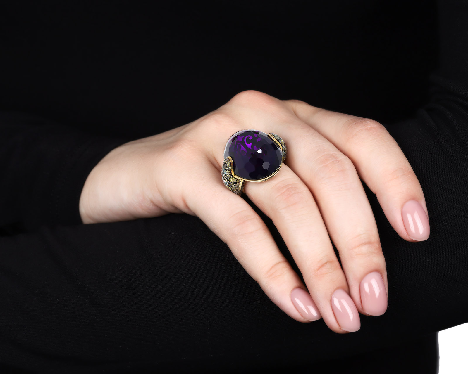 Завораживающее золотое кольцо с аметистом 25.50ct