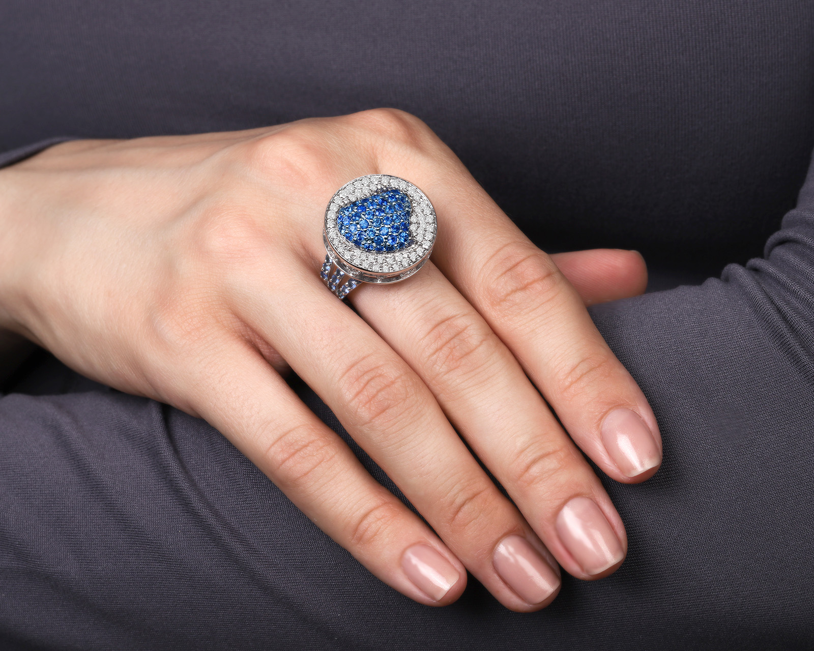 - многоуровневые кольца с дорожками мелких синих вставок.