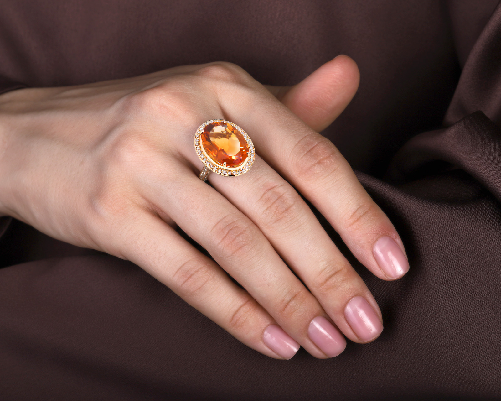 Золотое кольцо с цитрином 9.60ct и бриллиантами 0.88ct
