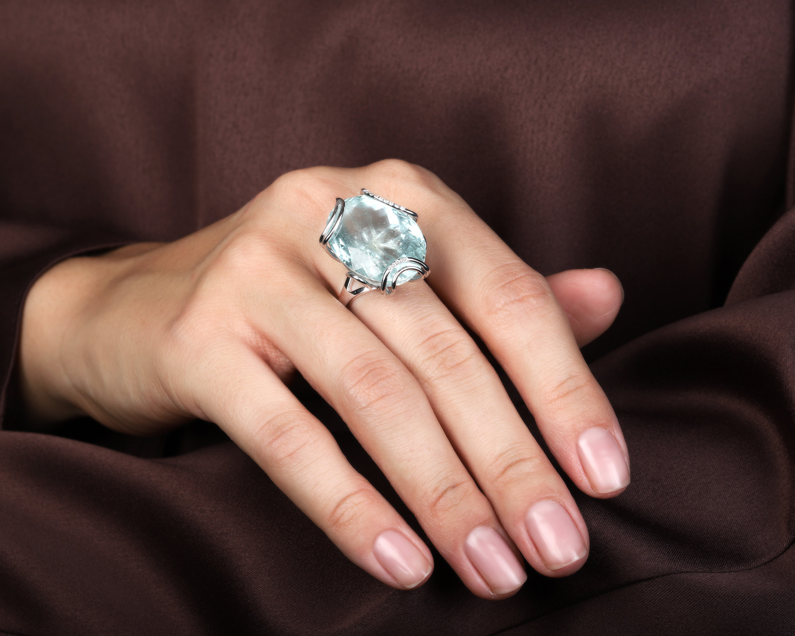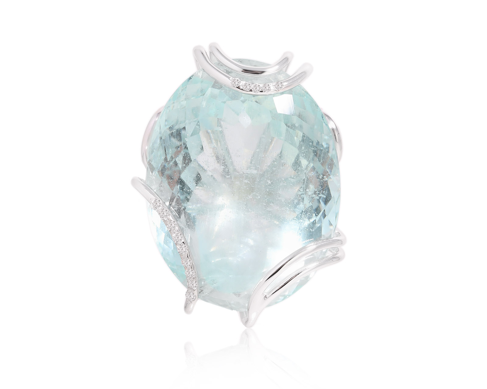 Золотое кольцо с аквамарином 41.28ct и бриллиантами 0.07ct