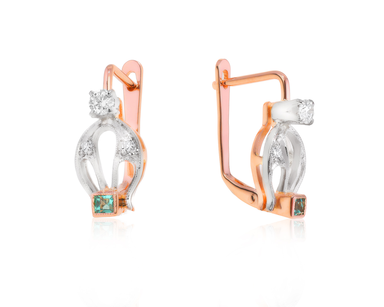 Золотые серьги с изумрудами 0.12ct и бриллиантами 0.35ct СССР 260724/18