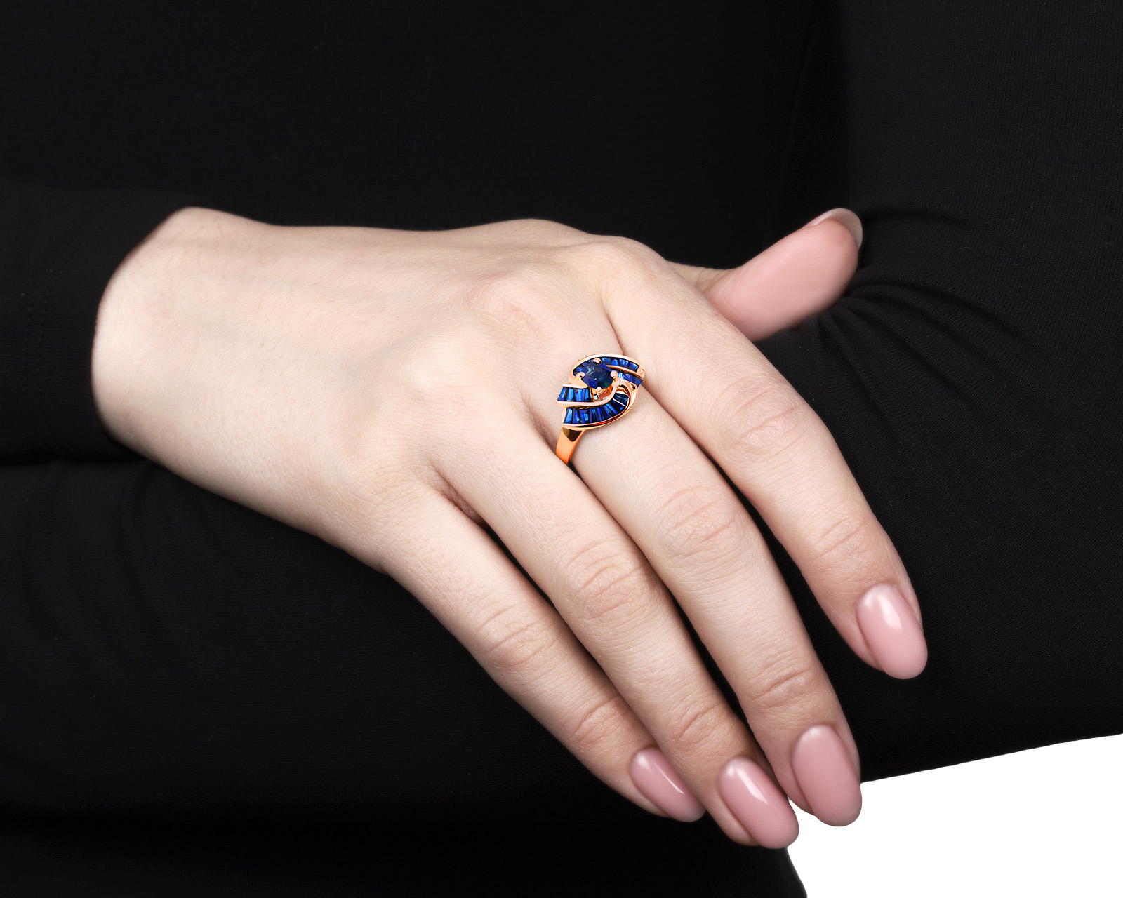 Праздничное золотое кольцо с сапфирами 1.90ct 241121/2