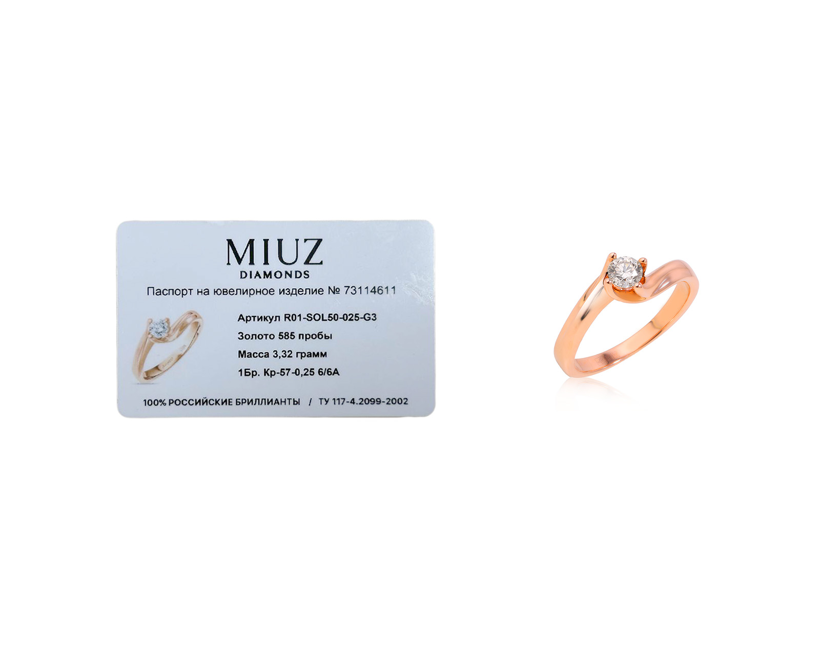 Оригинальное золотое кольцо с бриллиантом 0.25ct МЮЗ 240125/1